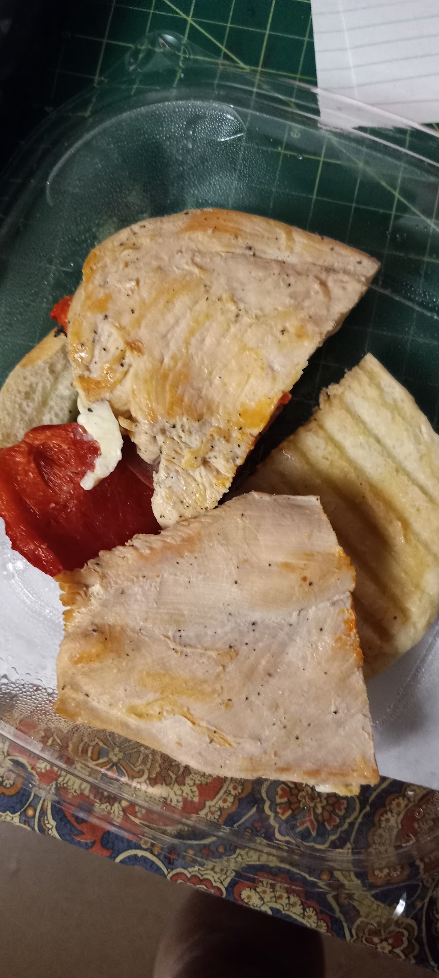 Read moreWe ordered several items including a grilled Chicken Panini. When I took the panini out of its tray, the lower section stuck to the tray's bottom. I looked down and thought I was looking at -extra bread-as the color was similar to bread-until I grabbed it and realized it was the chicken-uon the bottom of the actual bread. As you can see, it doesn't look like grilled chicken-and upon closer inspection it doesn't even look like cooked chicken. Regardless, I ate half....Now, in the past months I seem to have developed a sensitivity to not-well-cooked-chicken and have vomited and "past" -via my bowles- such chicken twice in the last two months. In the middle of the night-after eating this chicken I was forced from my bed and had to RUN to the bathroom as I was about to vomit-this chicken....I wrote the business and I'm writing this review for two reasons, 1, they served uncooked food and 2, they didn't have the decency or respect to respond to me. So now they've...