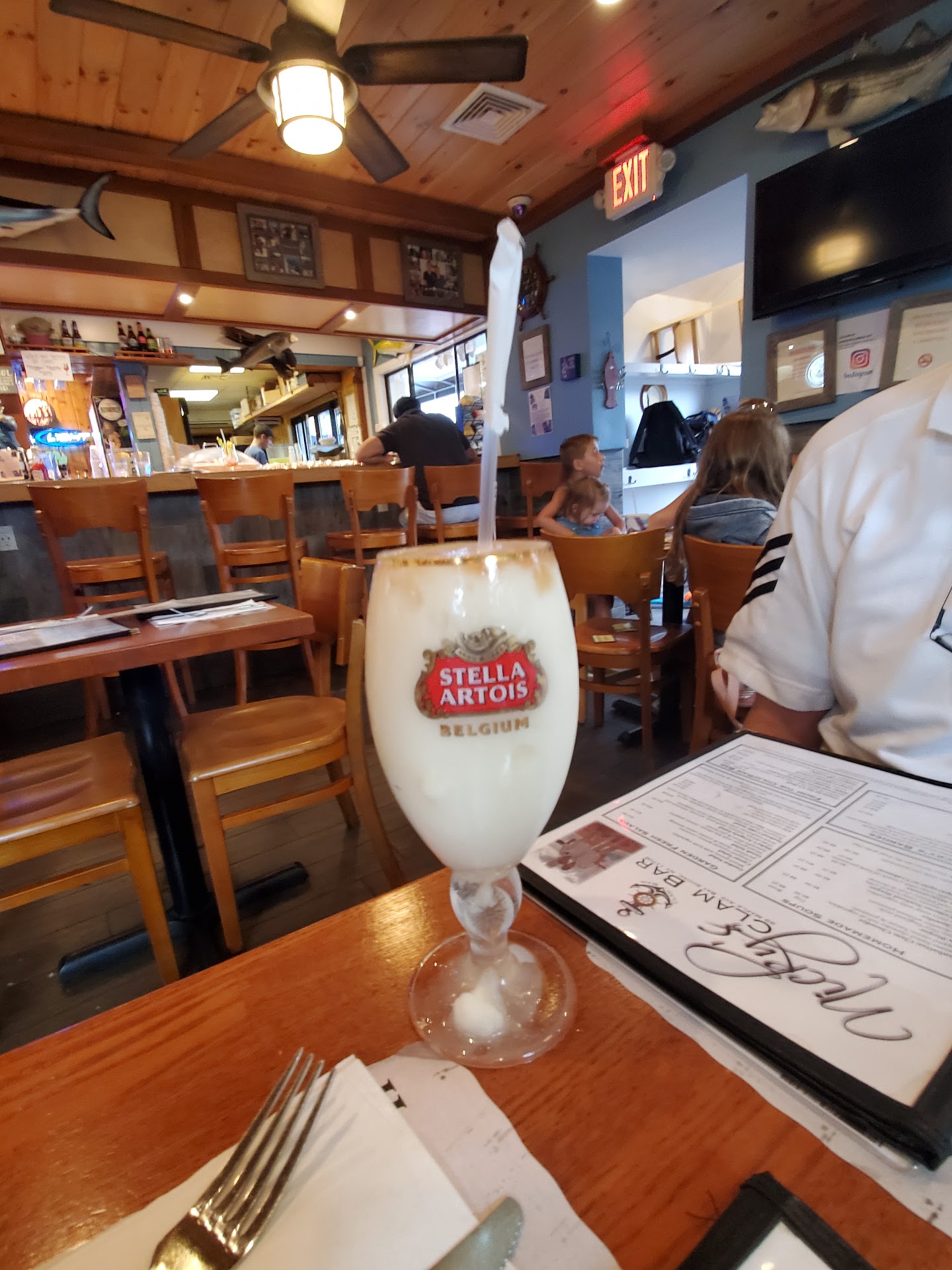 Most of us did not drink alcohol but I was curious about the Rocket Fuel, which consisted of rum, cream of coconut, pineapple juice, and ice blended together and topped with amaretto. I was surprised it was not garnished with any fruit such as pineapple and cherries like pictured. It was good but much stronger than the one I had at Le Dock in Fair Harbor.