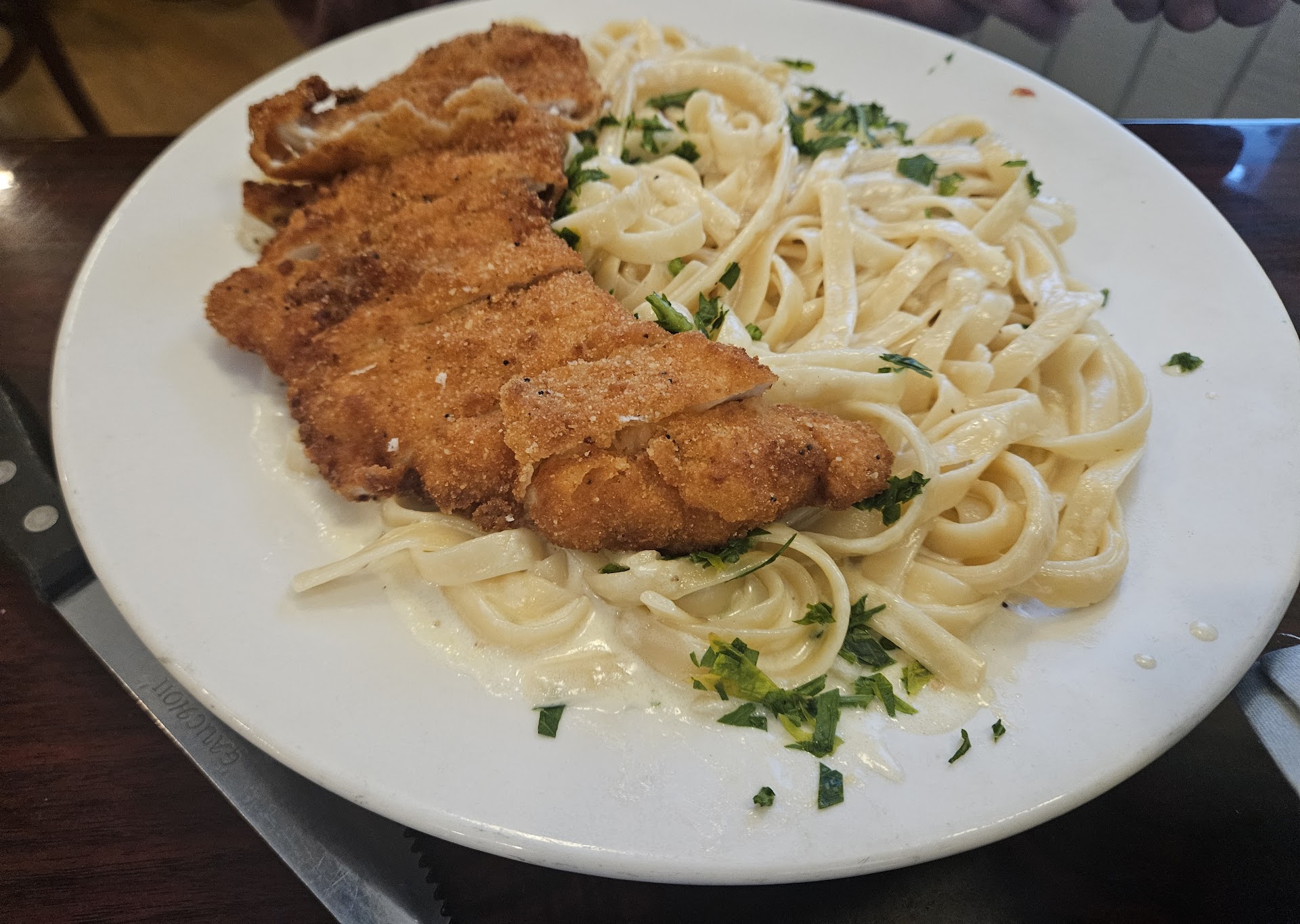 Read moreI do have to say this place can easily be 4 maybe 5 stars. It was a Tuesday and we went there for my birthday. It seemed slow but picked up as the night went on. What put me off was the octopus special. It had pieces that was good and others with a fishy aftertaste and the sauce it was in was very strong garlic flavor. The seemed to the same as the steak tips app though it worked together. That was really good, why I think this place can be 4 stars. My wife had the shrimp and scallions over a bed of pasta. Again the shrimp was good but the scallops where dry and the pasta wasn't in the description and wasn't dressed with anything. Plus my wife's not a pasta eater. My main was a simple chicken fettuccine alfredo. The chicken didn't have seasoning and the sauce was overly reduced. The I noticed My dish was dirty and can feel residue on the underside of the dish and grease prints on the edge of the plate. They simply just changed plates when the owner I think saw the dirty dish. I lost my appetite. In short our meal wasn't consistent some of the food was really good and others missed the mark. The waitress she was excellent happy and always made sure we had...