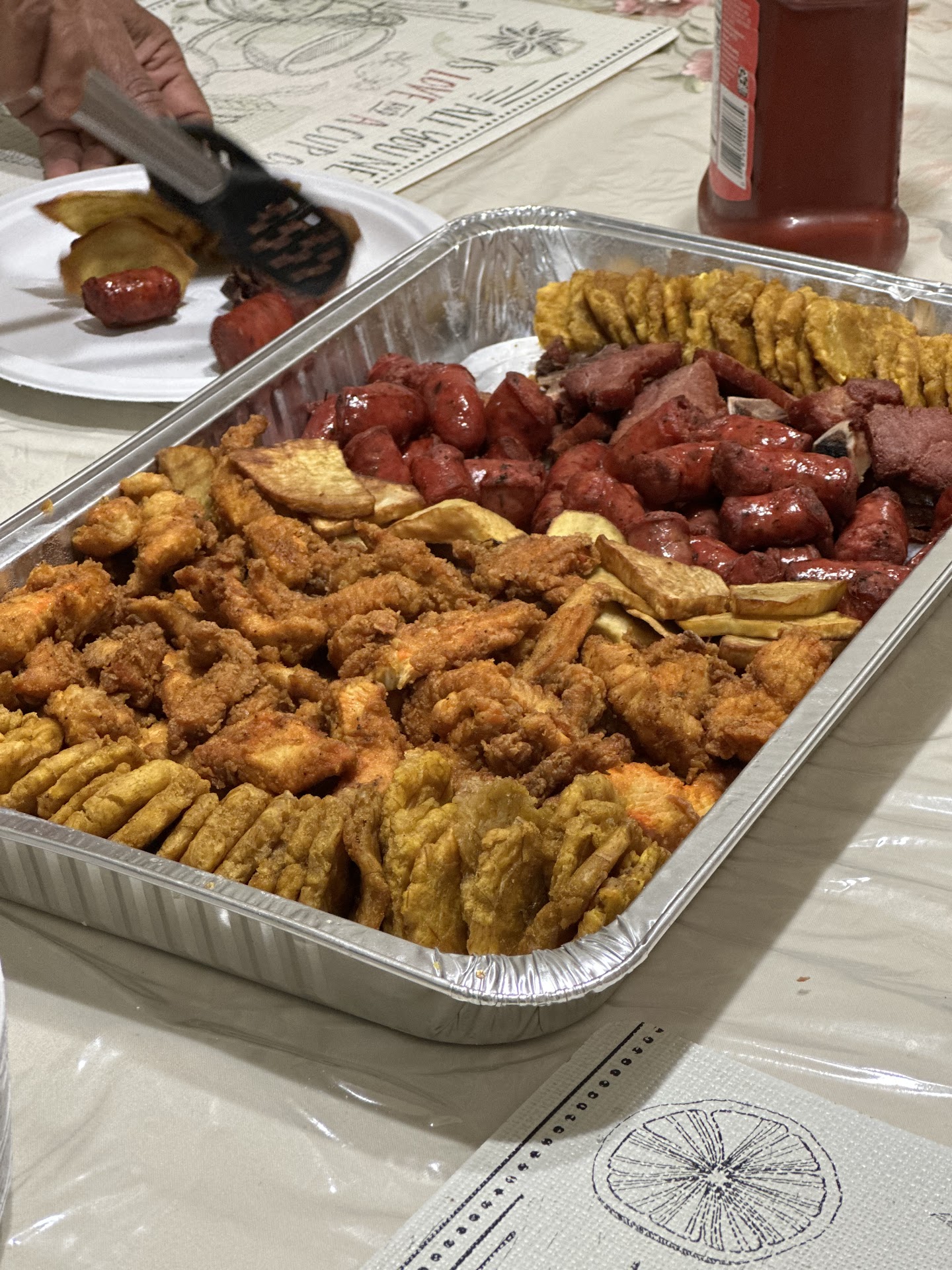 In the mood for some deli food and always pass this place on the way home. I don't know if because it was late that the quality and the care wasn't there but ultimately I found a hair deep into my dish. We order via Uber and it took about 45 to get to us which is fine. My platter of chicken rice beans with potato salad was okay. Flavor not there for me personally but not horrible. But my steak dish with shrimp although presented nicely, the steak was extremely tough and salty. Shrimp lacked flavor and rubbery taste to it and mixed in with my rice was a lovely white hair. I think all establishments need to make sure workers are in proper gear when handling food to avoid things like this. I will not...