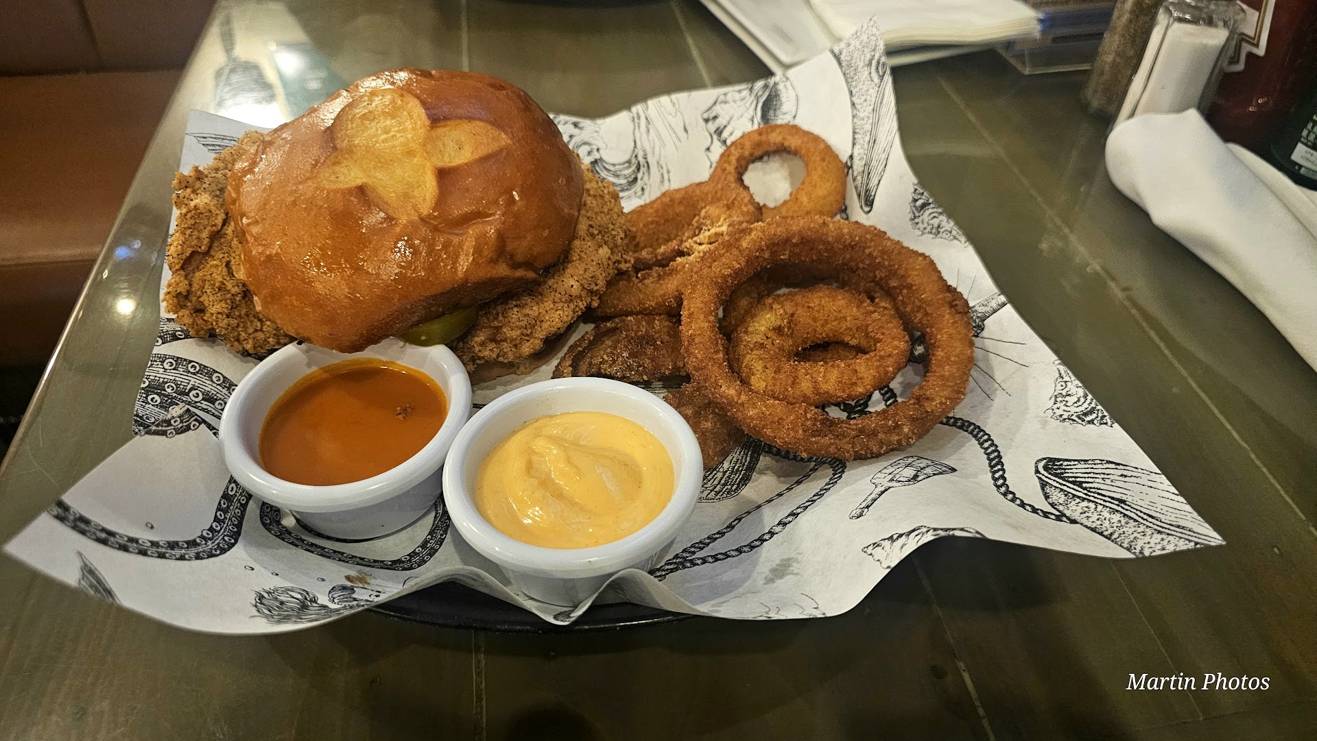 While in the parking lot at a restaurant across the street that we planned on having dinner at, we saw Bait & Tackle. We quickly looked at the reviews and decided to ditch our dinner plans for new dinner plans at B&T. We are avid fisherman so the name, menu and decor were highly appealing. We loved the decor, the bar was packed which is a great thing and we saw that they have specials and bands. For a bar atmosphere “happy hour” was lacking. Compared to other local restaurants, i don’t consider $1 or $2 off of Tito’s “happy hour”. Moving on to the hostess and waitress, everything was great. We were seated and a waitress took our order quickly. Moving on to the drinks and food. Drinks were good, my first drink came out with the wrong rim, but the waitress quickly corrected it. The food was so disappointing after getting off to such a good start. Everything lacked flavor. Our steak sandwich that should have been on garlic bread, came out dry and flavorless. The steak was overcooked. My crab cake, bacon and bread were extremely overcooked, flavorless and dry. I tried to eat the crab cake on its own to see if the overcooked flavor of the bread and the bacon was the problem, and that too had over grilled marks in it making it very dry and leaving it with an overcooked taste. Being in an area with amazing seafood, I have never had a crab cake that was that overcooked or over grilled in that way. The onion rings and sweet potatoe fries seemed to be all cooked in the same oils or in the same way giving everything the same overcooked taste that lack flavors. The sauces and calamari were good. The guacamole was ok, it was fresh, but also could have used some flavor. We had an array of choices and unfortunately no matter what it was, it all tasted the same. We had such high hopes based on how we loved the decor and the fact that they had different events that we would have come back for. Unfortunately, we will not be back. They seemed to have regulars so we wish the business...