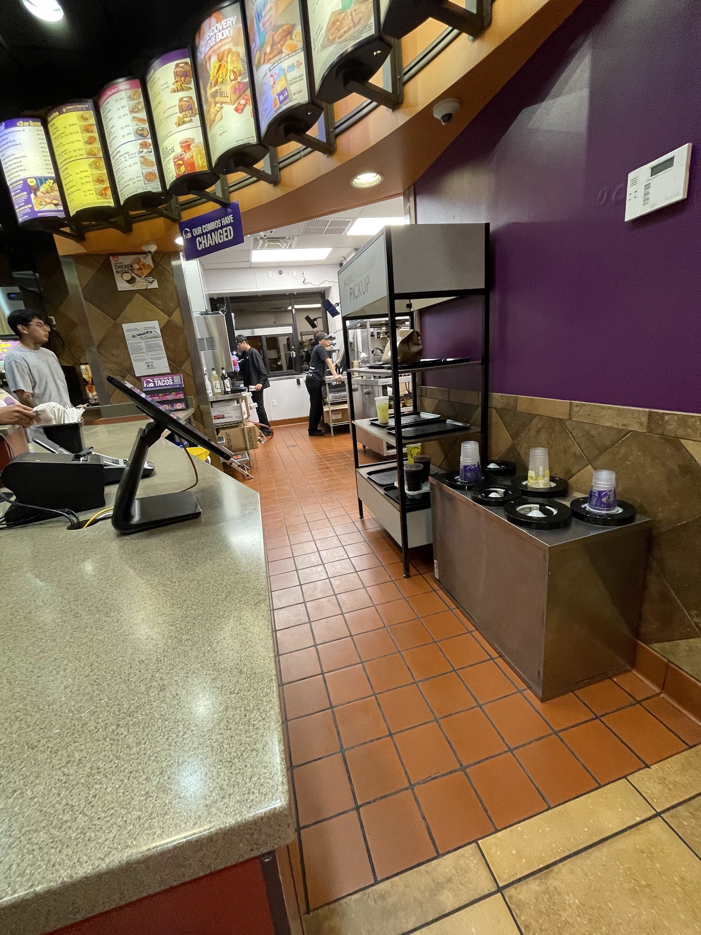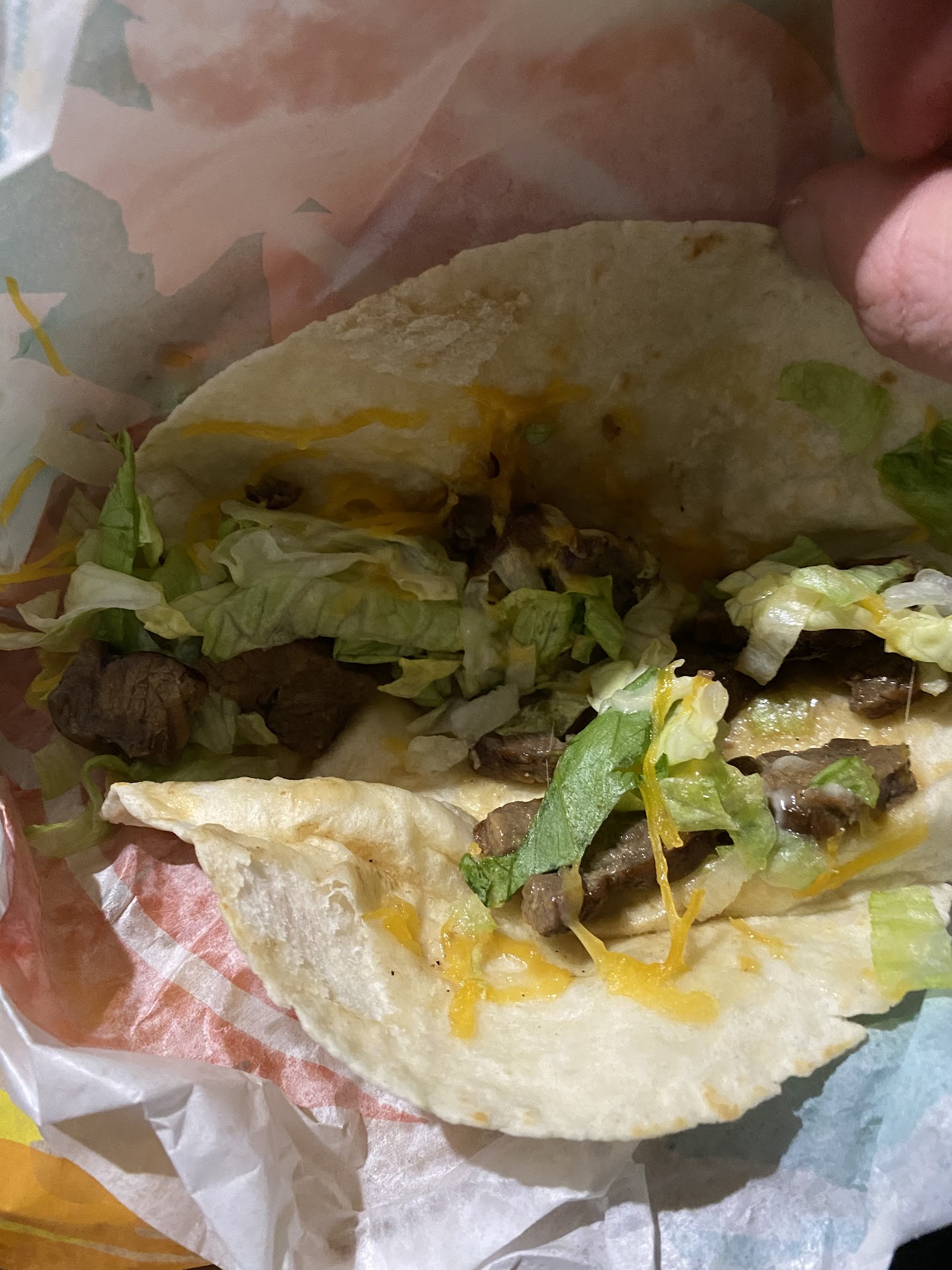 Read moreThere's one person there that is super nice. We went twice and right when they were about to close, sorry! But they super helpful since one of us didn't speak English and I was half drunk haha. Going in to order is way faster then waiting for the drive thru its always packed. Unfortunately that's were the good ends. The food is so skimpy. Nothing was satisfying. We got the Mexican pizza, the new cheesy Street tacos and nachos. The drinks were so watered down its like they were out of syrup . There were 2 fountain machines with the same flavors but they tasted completely different haha. I ended up just getting tea after trying them all. The Mexican pizza just bland . No flavor and no filling. There was an inch and half of just empty space on the edge inside and outside. The street chalupas that was my first and last time gettin them. They were even worse than the Mexican pizza... they're was maybe 1/5 the amount of meat inside just this little ball of like 5 little pieces of steak and not even other fillings to ..fill the rest of the space. It was very disappointing. The nachos were stale. Oily and broken. I was half drunk and very hungry it still wasn't satisfying. But I haven't gotten taco bell in years.. and this is the location closest to me. It could have just been this one location and because they were closing. If it wasn't for the super nice and patient person at the counter helping us, I would've given...