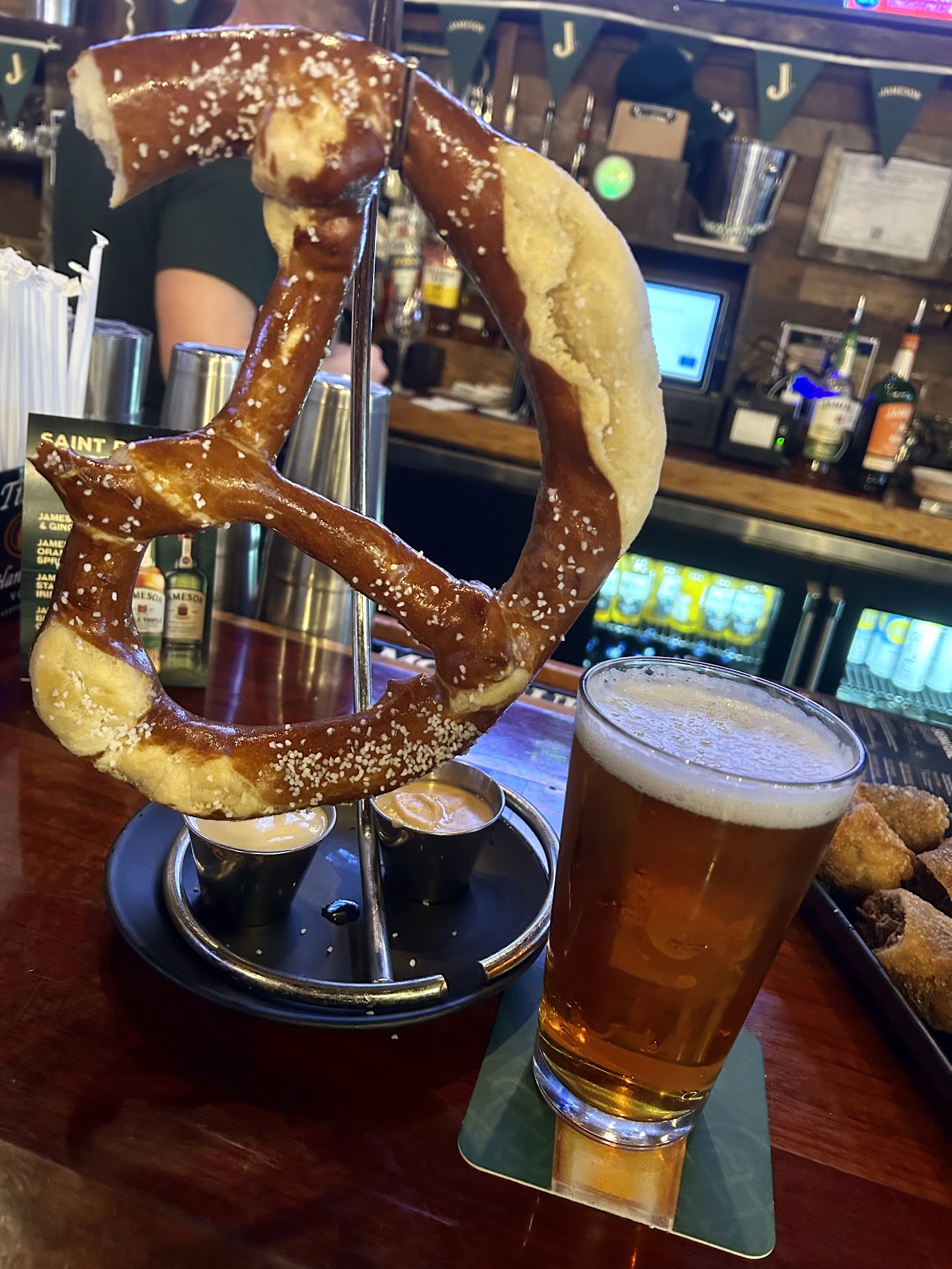 Read moreExcellent pub food in a casual and rustic atmosphere. Service is very attentive. Food portions are plentiful and come out in a timely fashion. Try the birria rolls appetizer. They are very filling and tasty. Mac & cheese bites were creamy and soft; not dense. Bavarian pretzel is humongous and soft. Crispy chicken salad was delicious and huge. Chicken was so tender on the inside and the coating was crisp; just perfect. Truffle parmesan fries are seasoned just right. Roasted brussel sprouts were awesome. The steak sandwich was nice but lacking a little in flavor. I was told the burger wrap was good although I didn't taste it. Get the Crispy Dragon Wontons at happy hour for $7. The drizzled sauces were the perfect accompaniment. They have a desert of warm chocolate brownie with oreos inside that comes with ice cream and whipped cream that is huge. Fabrizio is a wonderful server and took care of all our needs. Archie, the manager, was very helpful. Serena at the bar is super friendly and Manager Rashaan went above and beyond! Rebecca is an amazing bartender and Veronica, another manager really went out of her way for us. Food is always served very promptly. They have nightly specials. Thursday night wing special (20 for $20)! Happy Hour is from 3pm-6pm and you can't go wrong with the mussels in garlic white wine sauce for $7. New item Chicken Pot Pie is hearty and really hits the spot on the cold days. Sign up in their app to earn rewards and if you also download the In Kind app you'll get $25 off your...