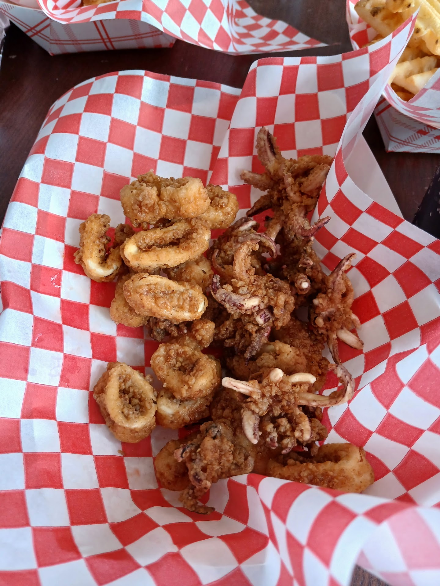 The food is terrible and not even cooked properly/safely! We ordered fried calamari for the table to share, a kids chicken finger meal, 2 burgers and a salad with grilled chicken to share.