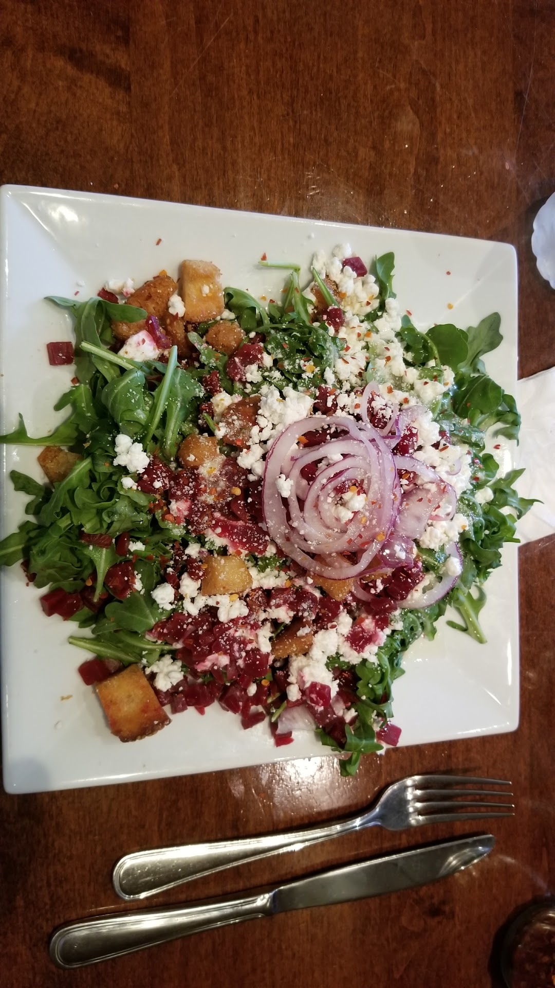 Read moreAs a former business owner I try to be as kind and objective as I can when writing reviews. This was our first time at Vinnie's. There is plenty of free parking and the building is very appealing from the street which is what drew us to stop in. The decor is upscale and modern with two sides to the restaurant. Once you walk in directly to the left is a fancier sit down restaurant and to the right is a more casual set of booths with a glass counter area of already prepared brick oven pizza's that you can just have heated up. They had a good variety the evening we were there. After a long work day we just wanted to sit down and be waited on so wanted to go to the nicer section with a wait staff and larger dinner menu. We were there at exactly 4:24 - there is a sign that says the section opens at 4:30. We asked the man behind the bar if we could be seated there, get a drink and wait until 4:30 BUT he said NO, you will have to wait until 4:30. NOW 6 minutes early they can't seat you????????? My husband was quite upset and staving so we opted to sit at the booth where you go up and order your food. For 3 slices of pizza, 2 small dinner salads and 1 coke the bill was over $ 25.00 and you have to go to the counter to order pizza that is already made and has been sitting..they just heat it up for you AND it is served on PAPER PLATES, WITH PLASTIC FORKS AND PAPER CUPS. Once we got our food, my cheese only slice was SO greasy it left a large grease smear on my paper plate. I had to sop up the grease which took 7 napkins! My husband ordered a broccoli cheese pizza which he said was okay. Now our salad was a bowl of greens with ONE slice of cucumber, ONE slice of onion, grated carrots & croutons! This for $25.00 !! Needless to say we...