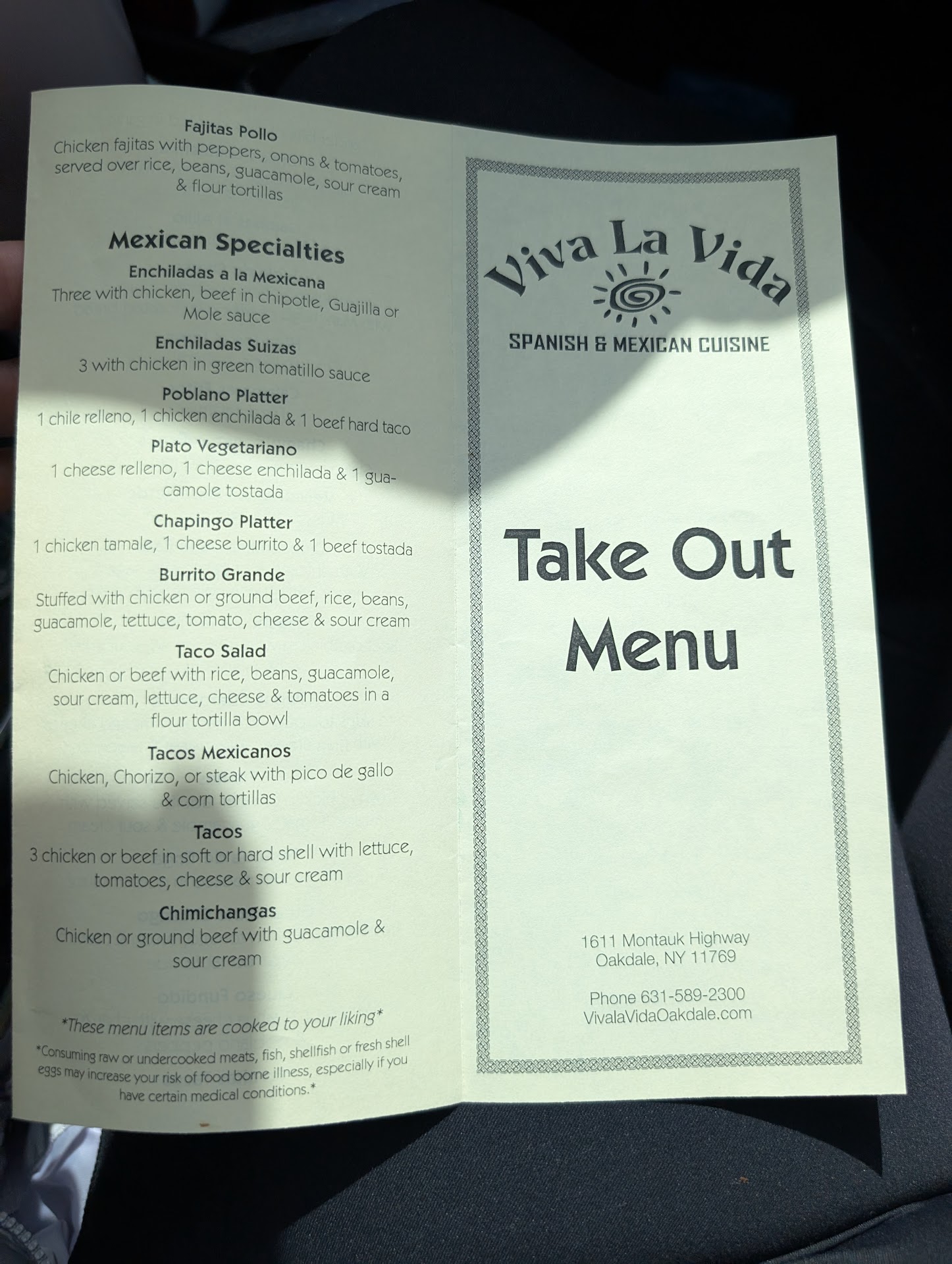 This place has been here more than twenty years, across from the old Bronco Charlies restaurant, now a parking lot, from the 50s and 60s, the log cabin motif and excellent food being the most memorable. Viva La Vida will also be memorable...like a dentist's drilling of teeth can be memorable. Okay, the food did not harm us. I am trying to give a pleasant review, but it is difficult. This place was relatively empty for a noon meal on a Friday (01/11/19). It now makes sense. There are better options for dining than Viva La Vida. Like Taco Bell. Money is not the issue. Value is the only issue. Maybe they will soon be a parking lot for Mannino's?