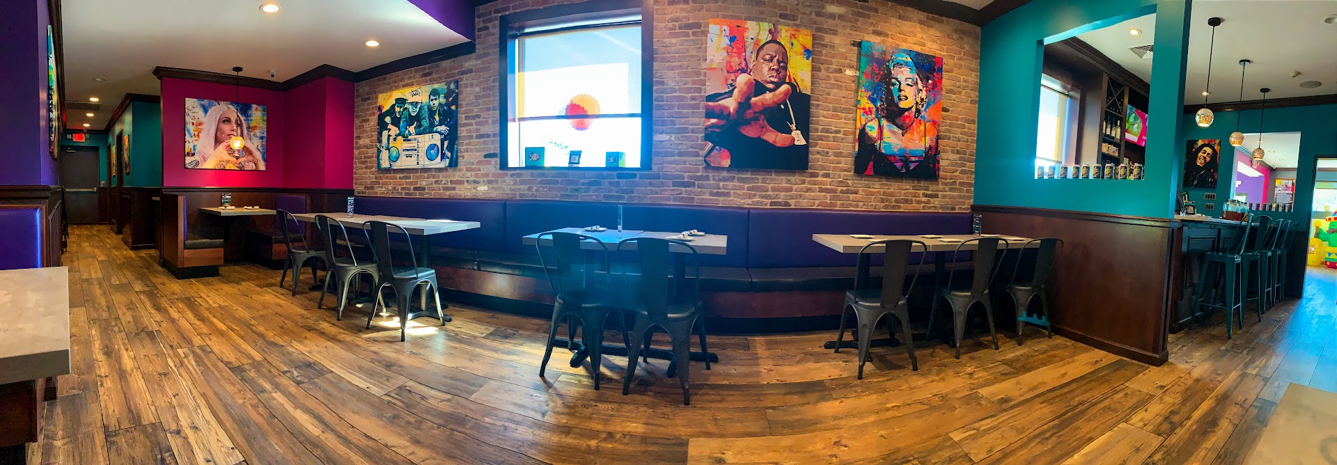 Atmosphere: 5/5 - Inviting decor, comfortable seating. Nice music. Good HVAC system made atmosphere not cold or hot. Modern feel. Not a huge place but feels good. This used to be a Friendy's ice cream (so you get the sense of size),but it looks nothing like it.