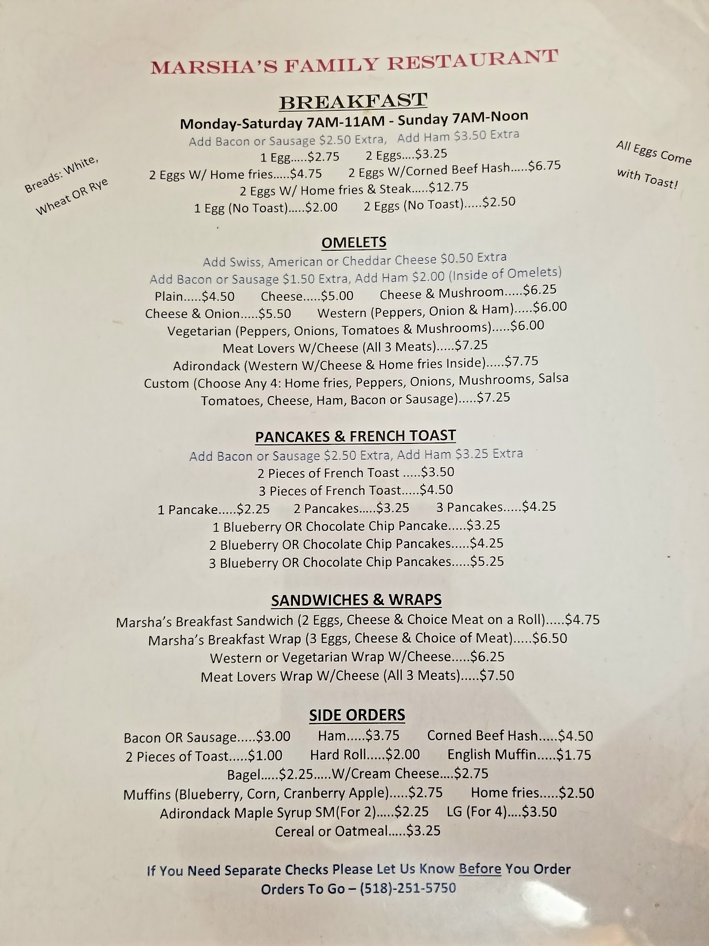 Read moreLong detailed review: We got the Adirondacks Omelet, Corned Beef Hash, and Meat Lovers Wrap.