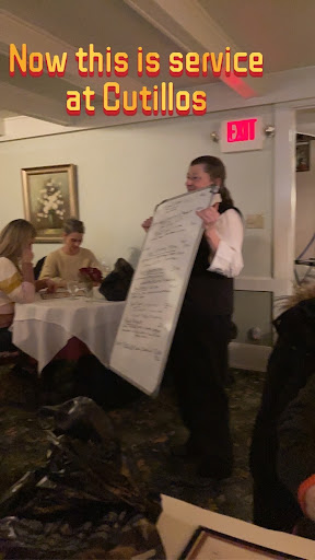Read moreMy wife, brother and sister in law went for dinner the other night. It was my wife’s and mine 1st time there. The food was fantastic. We started with the roasted red pepper and calamari appetizers. Probably the best calamari I ever had. Roasted red pepper, cheese and olives were very tasty. For the main course I ordered the pork loin. It was very tender and juicy, had a great flavor with the seasoning they added. My wife had ravioli which was cooked just right and the cheese flavor was outstanding. My sister in law had veal that was so tender it melted in your mouth. My brother in-law had filet of sole franchise. I did not taste it but he said it was outstanding. We had coffee and dessert. Their cheesecake is to die for, so good. We had red wine (Montepulciano) throughout our meal which was very tasty and very generous pouring. I would give this restaurant a 10 out of 10. The portions of food were just right and the price was not expensive. Oh yes and the waiter (Tim) was very attentive and a pleasure to talk to. If you want to have a great relaxing meal where you are not rushed out the door try Cutillo’s you will be very happy...