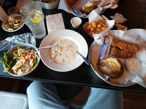 Very slow. We went on a Saturday night. Chalkboard announced Ribs @ 5 so I thought I’d give them a try. Only to find out they were out. Maybe erase the board when they run out(?). So now I have to find something else. The water came out and smelled off, so I ordered a soda, that came out and smelled the same. The ice machine could be contaminated? Or bad water equals bad ice too. I got the wings, they were ok. Drinks weee hit and miss. 1 person’s was almost all liquor, too strong to drink as is and another’s was good. It was hot and stuffy with the windows open. Luckily a storm was brewing so it go windy and cool, so it cooled off the bar. Otherwise it would have been very uncomfortable. There was live music outside, but the seats were filled so we had to eat inside. Not worth the gamble to go back in my opinion. 2 piece cod dinner...