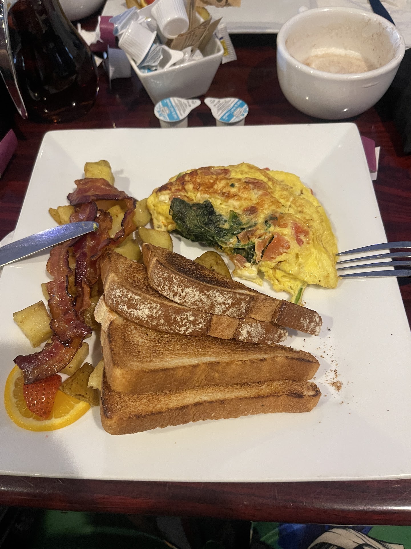 Read moreWent here twice, yesterday and today. Both times we had breakfast. Food is ok. Wife really liked the crepes. They are currently short-handed on staff due to covid related issues, which is totally understandable. Both times we went, we got seated right away (in the tent outside). However, the waitstaff never came to check on us or provide us with drinks. Yesterday, one table got seated and served by a waitress while we sat there, eventually I had to flag a waitress down and request a waitress help us. Today, 4 tables got seated after us, and got served before us. Again I had to flag an employee down and request a waitress for our table. This is not an issue due to employee shortages, this is an issue due to logistics and managers.