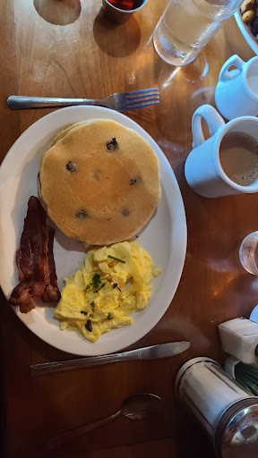 Read moreI came here for breakfast on July 4th weekend, we had to wait 45 minutes for a table for 2 which seemed to be standard across town for any breakfast spot that day. The restaurant had no air conditioning so it was quite stuffy inside. Our waitress was friendly but not overly enthusiastic about her job. I got 2 eggs scrambled and a pancake to try, my girlfriend got 2 eggs scrambled with sausage links and toast. The eggs were good, and tasted as you’d expect, the pancake was pretty good, not the best I’ve ever had but not bad, on a positive note they do serve real maple syrup and not that corn syrup garbage you get at other restaurants. Their signature maple butter was pretty good too and it’s subtly sweet. The negative regarding the food was the sausage links, they were absolutely horrible, borderline inedible. They were small, stiff and we could tell they were most likely frozen and microwaved. We didn’t even eat them. Another negative was the price of coffee, $4 for a 6 ounce coffee is a little pricey, another breakfast spot nearby charges $3.75 and they leave a whole pot of coffee for your table! Overall there are better breakfast spots in town to try...