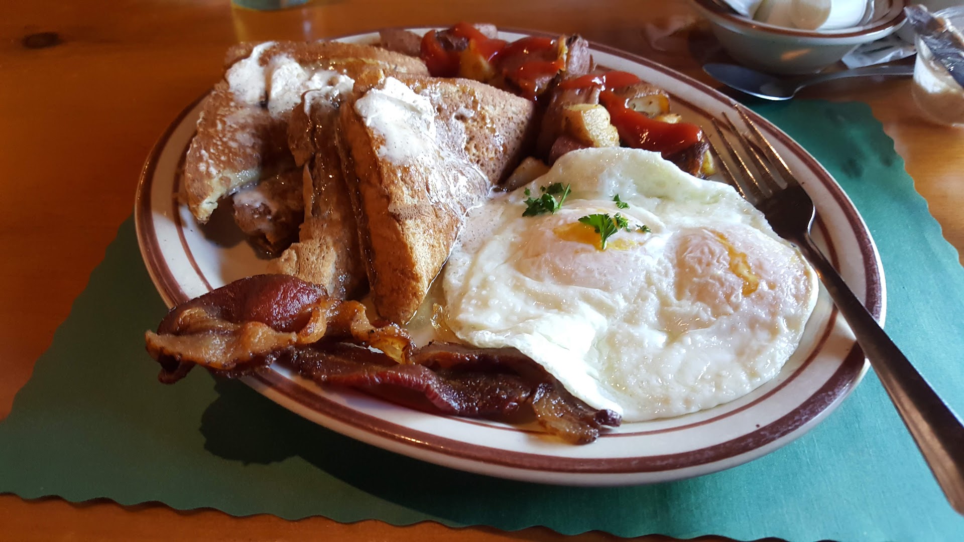 From the first step, you feel like you're back in old Lake George, in a log cabin, photos and decor emphasizing old life in the Adirondack Mountains. The food is delicious and the specials are excellent (hello, candied bacon!!!). The owner goes weekly up to a local farm to collect all their ingredients, so when they say farm fresh, they actually mean FARM FRESH. Its not a massive menu; this is eggs, omelettes, pancakes, malt waffles (so good!!), French toast and a few other specialty items. Short and sweet, simple and yummy. The prices are comparable to other breakfast spots, but the food quality is FAR superior.