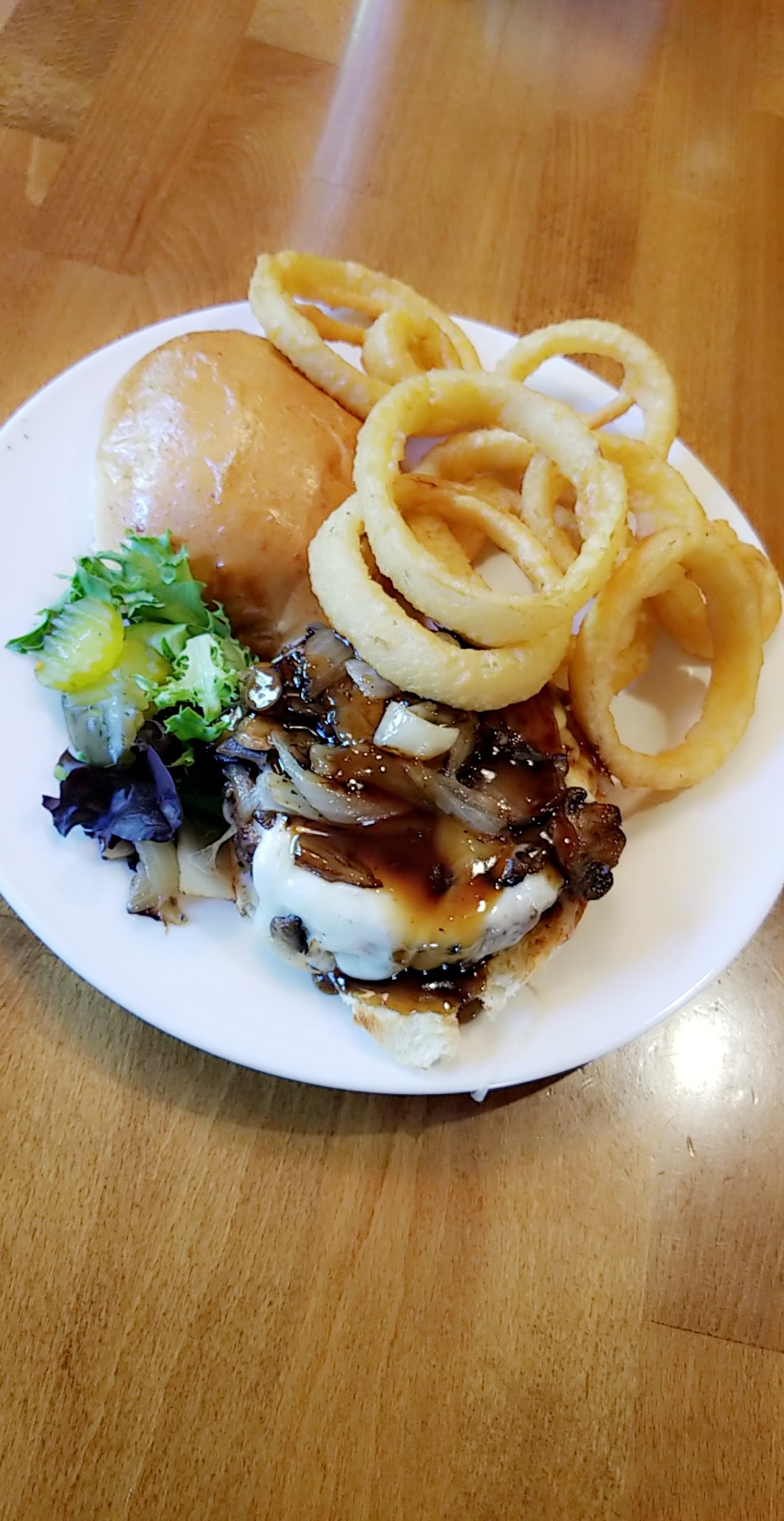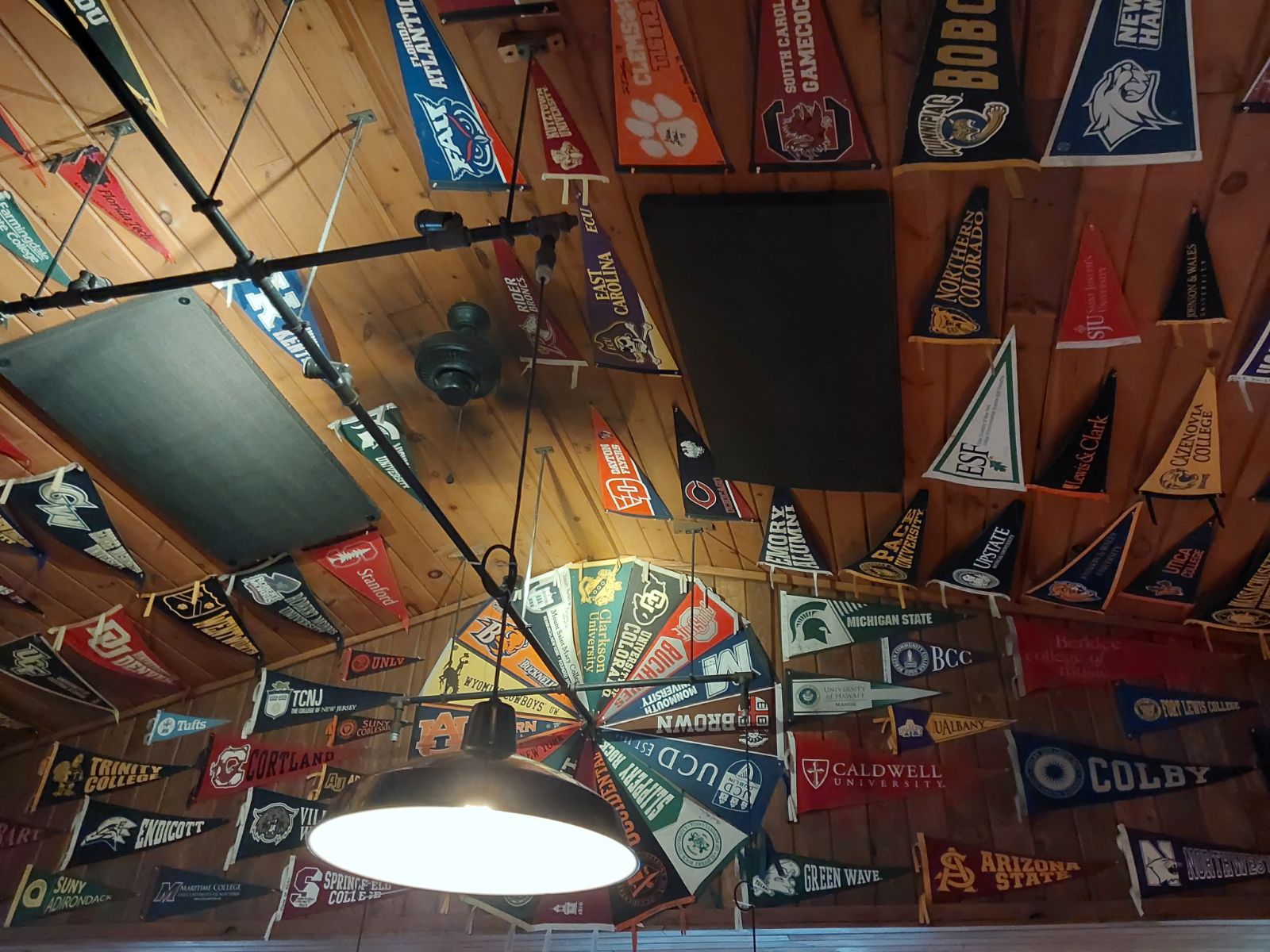 Read moreFound this sports bar looking restaurant while on a trip at lake george. First thing I noticed was their excessive collection of college flags. There were insane amount of flags from colleges all over the country and it took up about half the ceiling of the place. The flag collection gave the place a pretty chic feeling. Now for the food, the Buck Mountain Burger is a must. It's easily one of the best burgers I've ever had. The bourbon glaze and carmelized mushrooms and onions give it the most unique test. It's too bad they don't have any location anywhere else since the business is privately owned. We also had the Prospect Mountain Burger which is served with cole slaw and Sarah's Salmon. They have a good collection of beers on tap and bottle. The chocolate lava cake wasn't all that impressive. Probably not the best I've ever had but pretty decent. Last but not least, the service we got was amazing. The server was friendly and efficient and food arrived pretty fast after ordering. The place had a very local beach vibe...