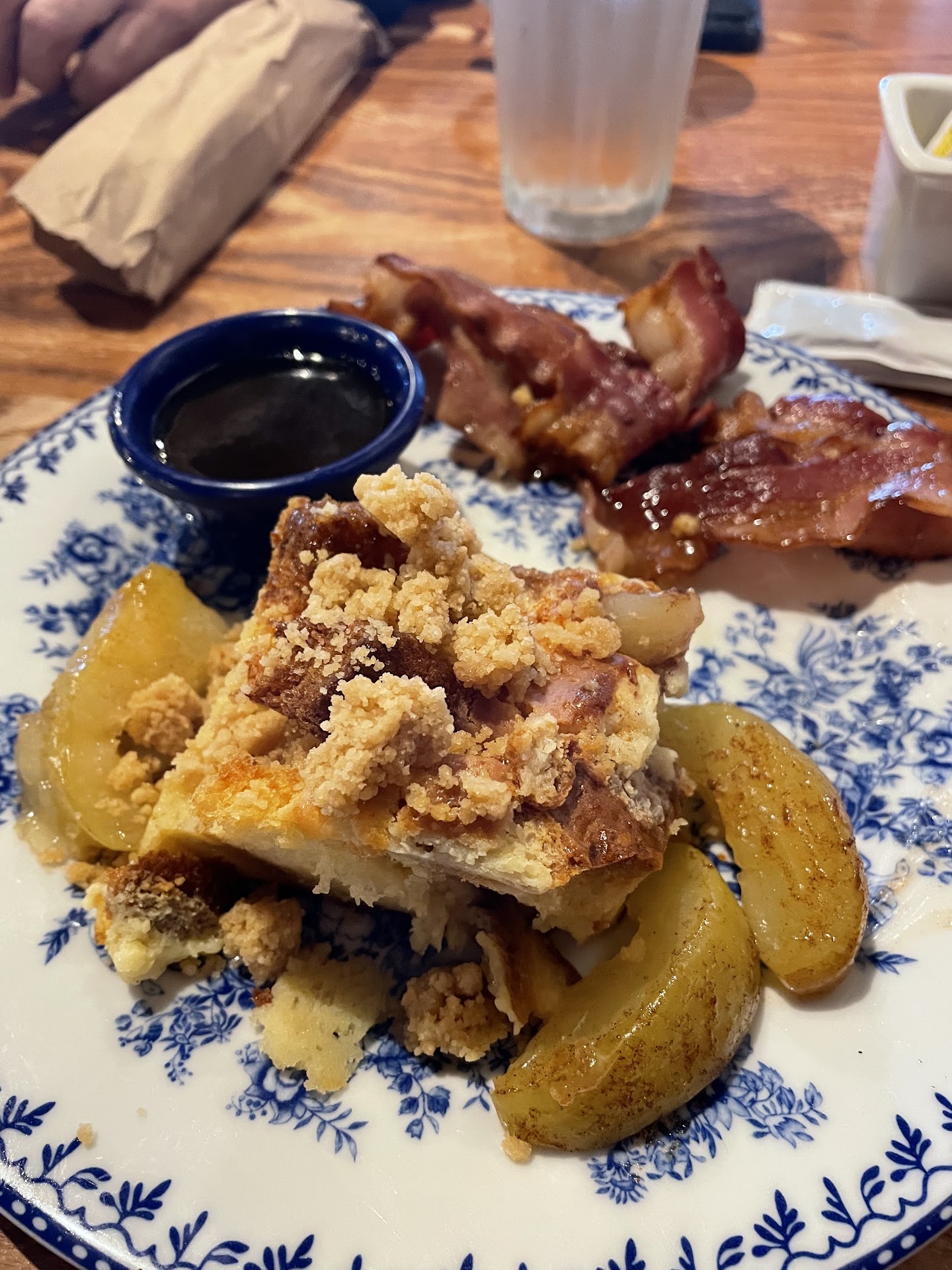 More recently, Cracker Barrel is shifting towards what modern diners āwantā, in their eyes. This includes adding trendy foods to the menu. Trendy foods are designed so that people take pictures of their meal (like I just did below) and share them on social media, to help drum up business by word-of-mouth. Iām fine with this, too. Some of their trendy foods have been really good, like the Apple French Toast Bake that I got for breakfast today.
