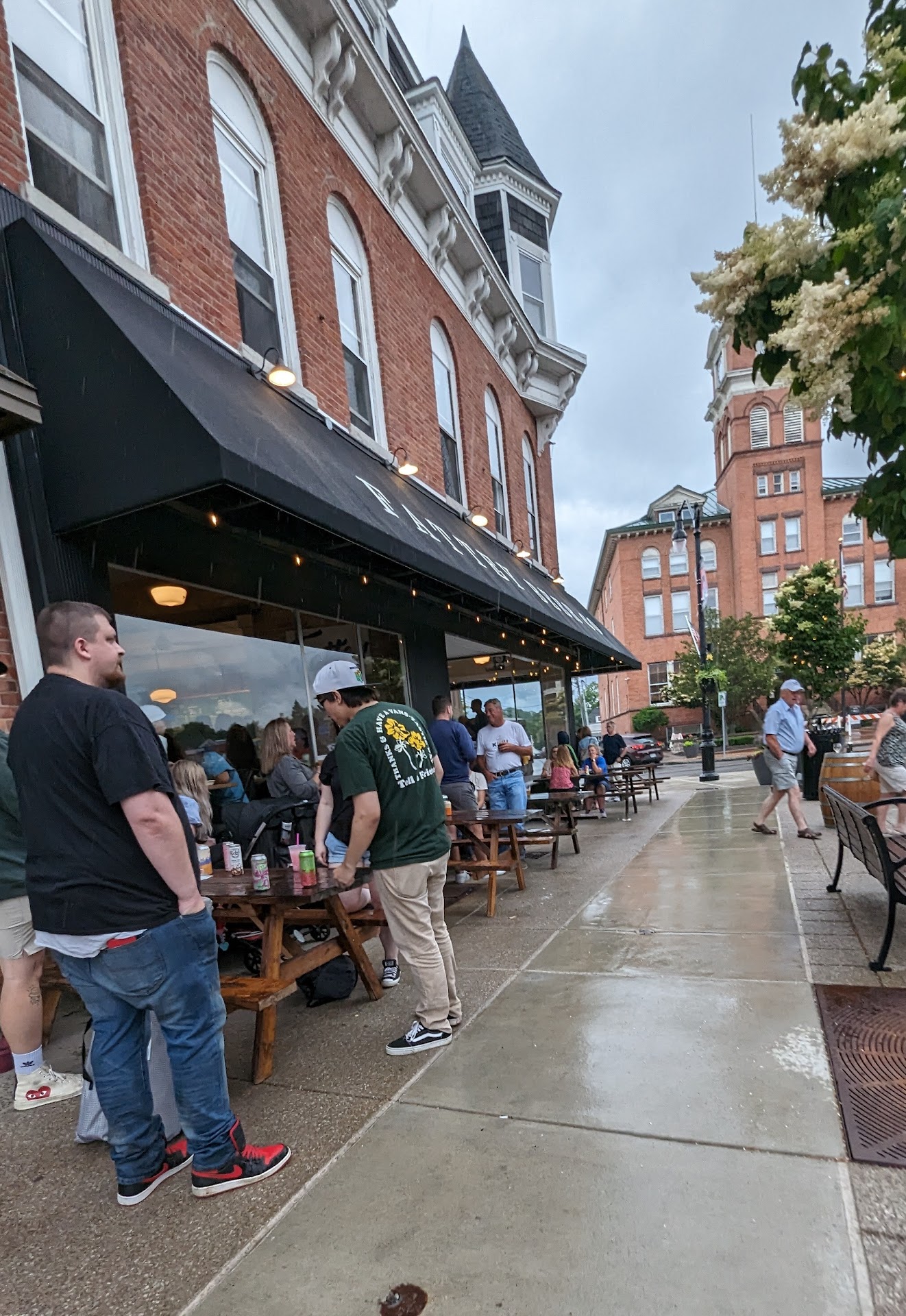 The cold beverages are sorted by variety. There is a mug club and food options (we did not eat this time). There is a can drop for your empties. It was packed for opening night.