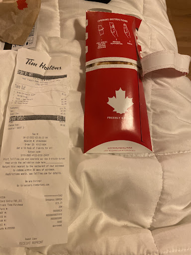 Read moreStopped Here between two and 3 oâclock on a Saturday afternoon. We ordered a grilled cheese Panini and a Tuscan chicken Panini and two ice caps, One small and one large. When we received the order they were both small and the girl had to take it back and correct it. She then presented us with a bag as we pulled away from the drive-in window. It had three sandwiches in it and we had only ordered two. The grilled cheese were not very warm and the Tuscan chicken was not the way it shouldâve been prepared. It was basically mayonnaise on the bread with chicken and a slab of cheese, not even melted! I also want to mention that we never received our credit card receipt or any napkins in the bag! Very surprised at this type of service at Tim Hortons and will not be returning to this location again. Hoping to hear from the manager so that he can reprimand his staff to do...