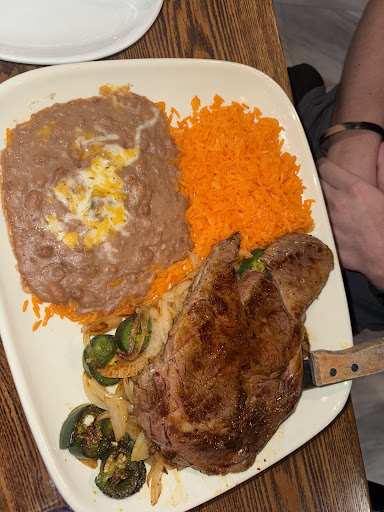 The chips and salsa were yummy but the chips were just a little too thick for my liking. For a meal I got the birria tacos and I’ve never gotten a less amount of meat in a birria taco than at this place. But it was very cheesy and did have a good flavor. The rice was also very vibrant orange makes me wonder what kind of dyes were used to get it that bright… could be nothing but just makes me curious. The beans and rice were really good!! Honestly hard to mess up haha. I got the coconut marg and it was very sweet, so definitely don’t get that unless you’re ready for a dessert in a drink. I should have known better honestly. My fiancé got the steak don pepe, which he really liked but said the steak was lacking seasoning/flavor. His favorite part was the sautéed jalapeños and onions on the side. He also got a jalapeño margarita and loved...