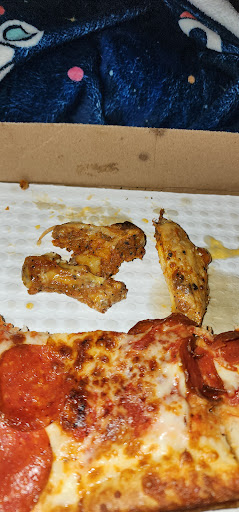 I made my order online and had it scheduled for pick up later in the day. I ordered a regular crust with pepperoni on one side and sausage on the other. As well as BBQ wings, crazy bread with sauce and Twix cookie dough brownies.