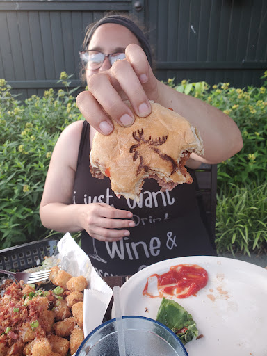 Read moreFirst time here. Nice young gentleman was waiting outside at the top of the stairs by the Entrance to the restaurant. Walked and seated on the back patio and he was very polite. Here's where it gets a little set back. The waitress/ gentleman failed to set the table with food utensils as well as napkins. The waitress was probably new but hey, learning experience. Drinks (Water) were served before taking our order but did not receive any straws, okay maybe she forgot them. Ordered an alcoholic beverage (The Berry Patch) it was yummy but for the size of the drink; it was Not worth $8. The Griiled Chicken Sandwich with a side of fries and pickle was really good. The garden salad was alright for the portion. The Lemon Shots were tasty yet strong. The Tropical Jello Shots, not my cup of tea unless you like Coconut. Loaded Tater-Tots were yummy towards the outside yet becoming soggy once towards the center due to all the bacon and cheese Smothering the center. Came with a side of white sauce that gave it the extra zing it needed. The Burger-American with a side of fries a pickle was yummy and filling. The meat was cooked perfectly. The Pulled Pork Melt with fries and a pickle was too shredded (Pork) even though the sandwich contained pineapple slaw. Lastly, received check and when it came time to sign there was no pen to use. Luckily I always make sure to pack one just incase. Drinks (Soft) were Not Included with the Sandwiches and Fries. In the end,...