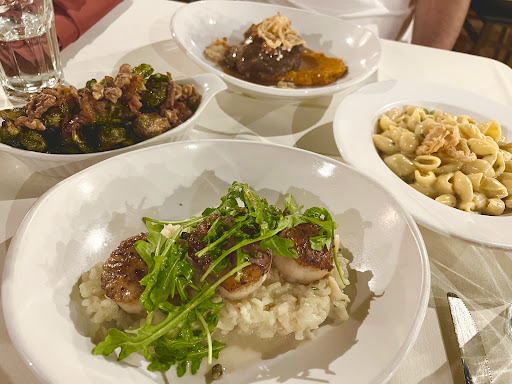 Read moreThe place was cozy, staff was friendly. Glad to have a fine dining restaurant in the area, there aren’t many restaurants around. Started with the appetizer- the crab cakes were delicious but a little smaller than other restaurants. For our main dishes I went with the scallops with risotto which was delicious and the scallops were cooked to perfection and the risotto had a good al dente texture which complimented the sauce. My husband chose the braised short rib which was very flavorful and pulled apart nicely. The compliments of the sweet potato and candied bacon went very well with it. We also added the roasted brussel sprouts which were cooked nicely and the French onion Mac & cheese which was creamy but not much of the French onion flavor save a bit of crispy onion on top. It wasn’t what we expected. For dessert, they gave us a complimentary deconstructed cannoli because it was our anniversary, which made us feel special. Overall, the food and experience was great and I’d definitely go again as well as recommend...