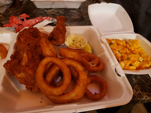 I had the honey dipped fried chicken, and she had a burger and Buffalo mac. I can honestly say that it was the best fried chicken I have had in my life. They must marinate the chicken before they fry it, it was so tasty. I also grabbed a few local cans of brew to go. All items were packaged nicely for takeout. The food...