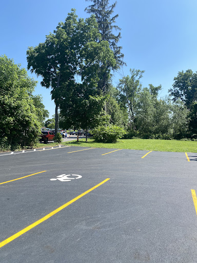 Clean and easy to access from Vitale Park parking as well as behind the shop parking. New paved driveway is smooth. Walk ip window in the back from parking available, or inside seating at front. Some things to know: walk up shelf is marble, which is blazing hot for small hands. Be aware. Sign is too late to see to protect small eager hands. Back may need some umbrellas or cover against sun to fully enjoy. Great location. Perry’s ice cream no surprises....