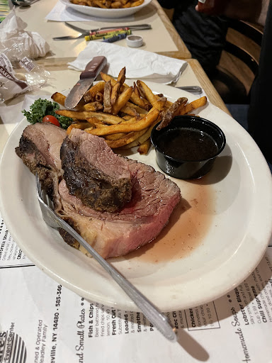 While passing through Lakeville, we were determined to find a place that accommodated the 6 people in the car, 5 adults and one child. Searching online for restaurants we came across this one and at first glance based on the name we wouldn’t have thought it would have been a place for all of us. We had various diet restrictions and we were dressed very casually because we were coming from an outdoors day at Letchworth state park where the dress code was very comfort casual. We were thankful to have found photos on Google, other positive reviews and photos of inside the building and most importantly, the menu! There was something for everybody not to mention multiple items and was hard to decide because everything sounded so good! As we walked in they sat us immediately and the service was prompt and very friendly. The food did NOT disappoint! This entire experience between atmosphere, prices, quantity and quality is the reason why we will be back since we are local. For those vacationer friends traveling with us, well we are happy you truly enjoyed your experience and sorry you won’t be able to come back for quite some time 😆 We will be sure to tell you what we get to eat next time! Here’s a photo of the king cut prime rib! Highly...