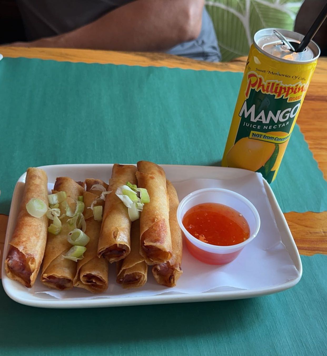 Read moreThis was my first time eating at a Philippine restaurant and everything was great. Hapag Bistro is a cute little restaurant, with great service. We were greeted warmly by the staff and seated quickly upon our arrival. Our party of four shared a Lumpia appetizer (7 pieces). They were light and delicious. For our main dishes we ordered Pork Sisig, Lechon Kawali, Longsilog, and Dinugu-an to share. We also got 2 extra sides of rice but I have to say the garlic rice that came with the Longsilog was definitely my favorite. The portions were large enough for all of us to try a healthy portion of each dish and the ingredients were all fresh. For dessert we had Turon with Jackfruit and ice cream. You definitely have to try the mango juice. It’s a super delicious canned nectar. We also tried Calamansi juice, it tastes citrusy and goes well with the dishes we had. Five stars all around. Great food. Great vibes. Above average service....