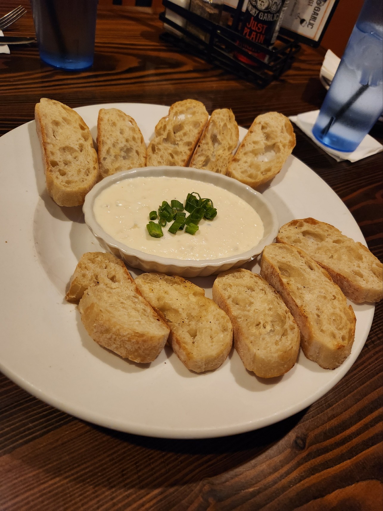 We started off initially with the Garlic Cheese Dip appetizer. The dip had a great flavor, but it could have been a touch hotter and crispier bread for our preferences. We still ate the entire thing and loved it, but if it was hot, it would have been perfection in a dish instead of the kinda hot dip we got. No complaints from either of us in the end.