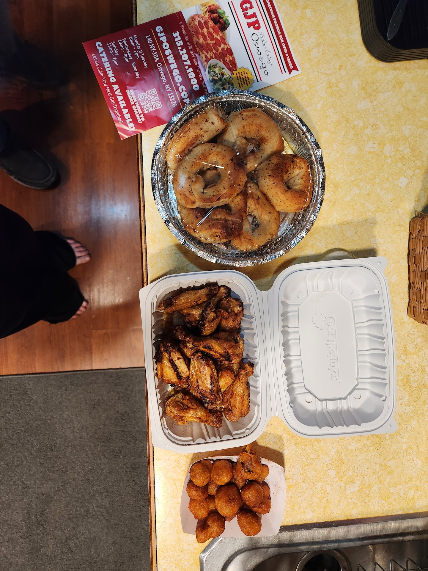 I was just there to pick-up my dinner. Worst food I ever ate, worst experience in any pizza shop I've ever been in. Let me preface this by saying I'm a 45 year old native of Baldwinsville. I grew up eating at Gino's in bville and later tried out the clay & N syr. locations, now I've also ate at GJP and was EXTREMELY disappointed.