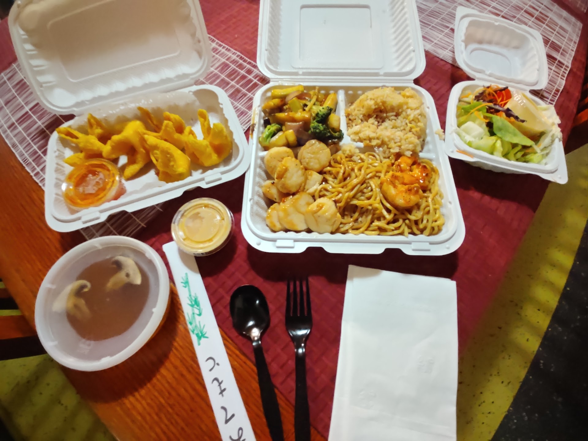 Went with an order of the Scallop Hibachi Dinner and an appetizer order of Crab Rangoon. Ae expected the Crab Rangoon was so yummy, I'm a sucker for fried foods but Crab Rangoon hold a special place in my tummy. Lots of crab stuffing, nicely fried, and the sweet chili dip was a lot more mild than I was anticipating. The main course was almost perfect, but the Scallops were a little on the sandy side and had an unpleasant crunch. But the shrimp, the noodles, the rice, and the veggies were filling and tasty. And dipping the veggies in the, I believe the term they used was "Yum Yum Sauce", was quite an experience.