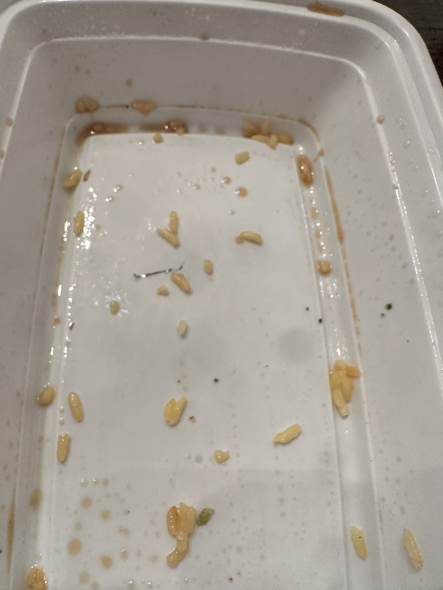 I literally counted nine pieces of pork in the Pork Lo Mein. The pork fried rice was basically sprinkled with minor bits of pork, which is totally not the norm. The chicken and broccoli was about 90% broccoli. Lastly, the sweet and sour chicken barely filled the container whereas it's usually filled to the point where the lid is crushing the chicken.