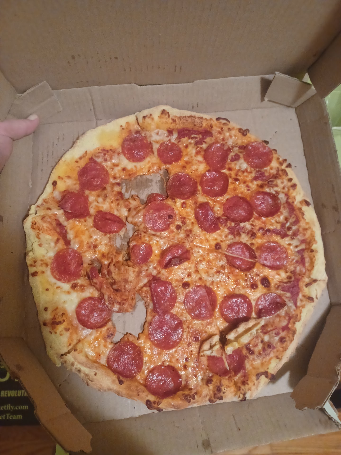 Read moreI went to pick up medium pan pizza and I think 1 liter diet Pepsi because they charge $6 for delivery. Very stale odor hits you when you enter shop. I thought pizza shop supposed to smell of delicious pizza baking, not gross stale odor. I have been to other Domino's that didn't have that stale odor. I was so hungry and everything else closed around 10:00 so I had no choice but to get pizza there. When I got back to my hotel room I opened pizza box. One of the slices had a dent on the side of the slice another one had sent where the crust is. Of all the pizzas I've seen in my life, this was the only one that had dents on the slices. Try to get to another place in the area if you want pizza. Don't...