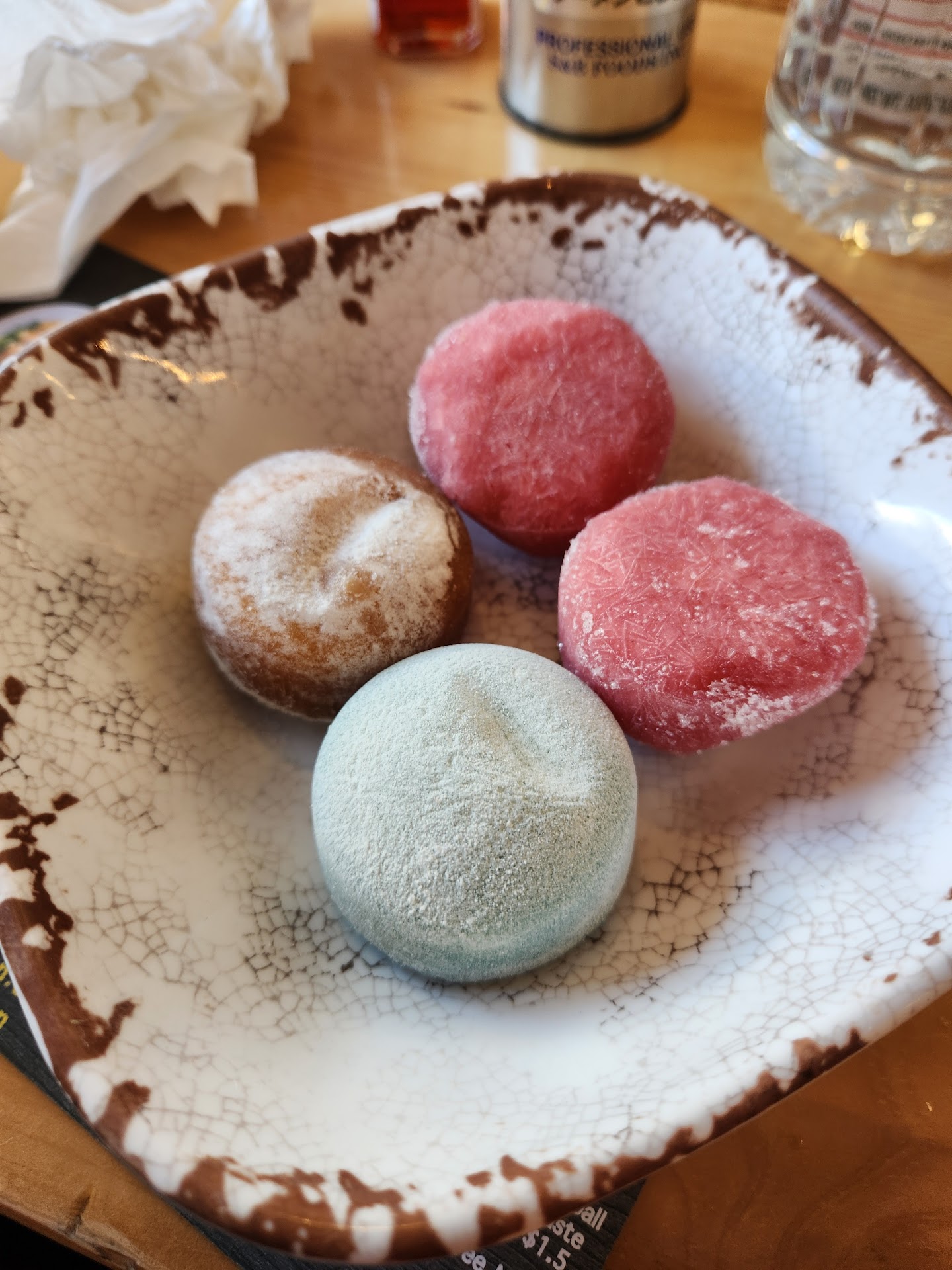 For dessert I decided to try some of the mochi. I got three flavors: salted caramel, cake batter, and vegan lychee. The salted caramel and cake batter mochi were good. Nothing spectacular but good enough. The vegan lychee wasn't too good in my opinion. Maybe it's the fact that it was vegan, but didn't like it at all. The texture was crumbly and had a gritty mouth feel. For how good everything else was, I was a little disappointed with the mochi, but it's only a small part of the experience.