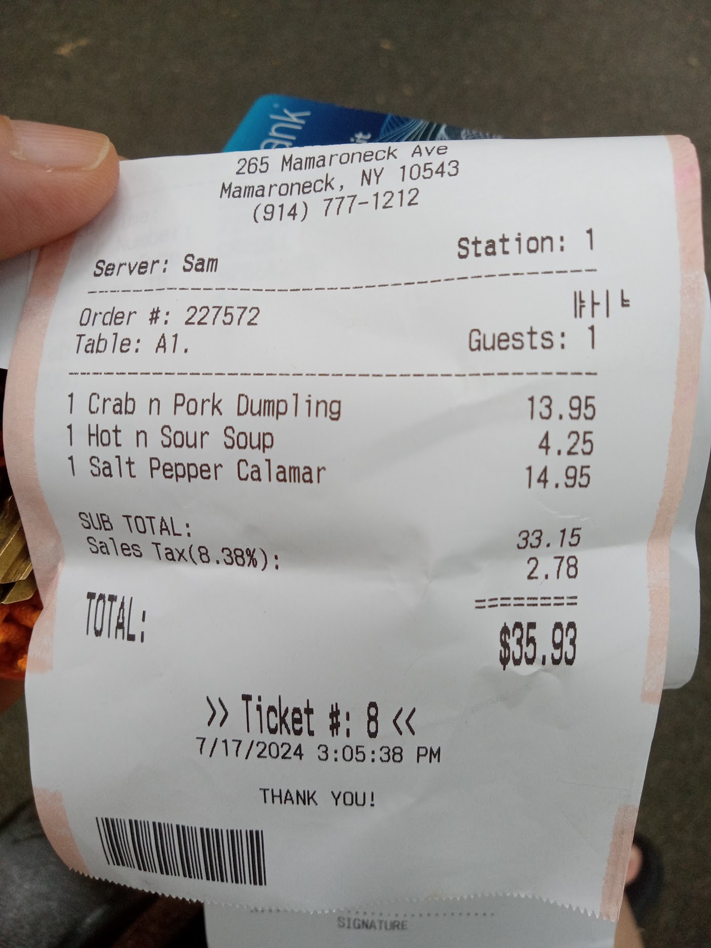 During the time that I was speaking with Chris my order came, so I took the food that I had been waiting 35+ minutes for. Unfortunately, at home it lukewarm soup buns and cold calamari. The rest of the food was ok, but you can tell it was just sitting there for who knows how long.