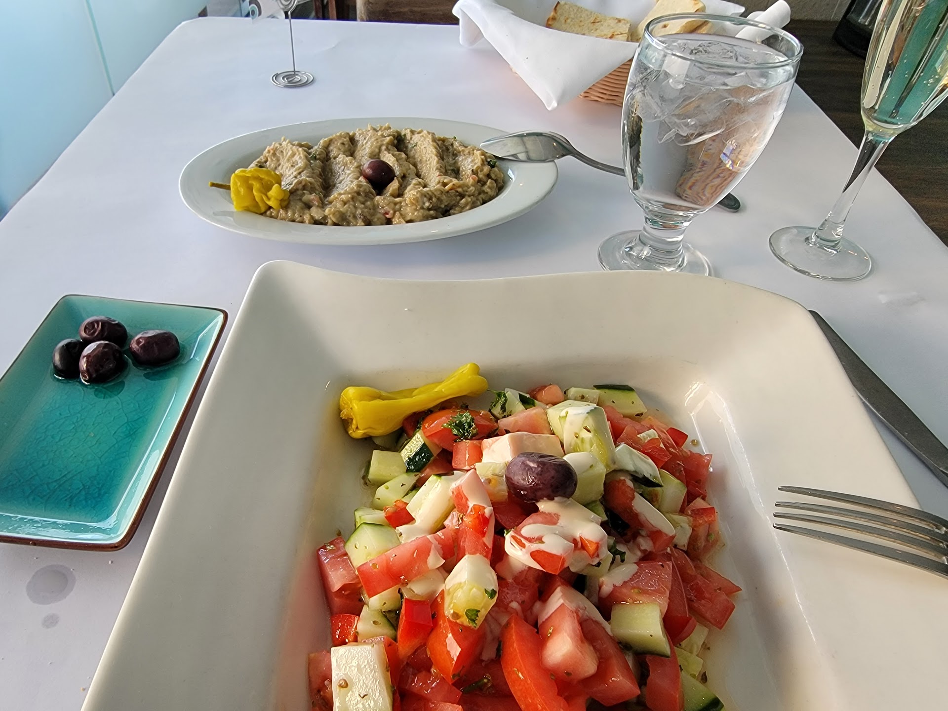 Read moreVery good experience in this nicely planned setup of plenty of tables, decent room to move around plus a decent size bar. I called ahead to make sure they were open and the greeting was pleasant on the phone and in person. The table and kitchen service was good and quick. The food was cooked to the right tenderness and my cold apps were good too. I had the Bubagunush that I combined with my pre-meal pita bread and olives in oil, Jerusalem Salad and my entree the Lamb Moussaka. Everything tasted good even though I was expecting more of a spicy taste before using the red sauce served with the meal. But, each person's palate...