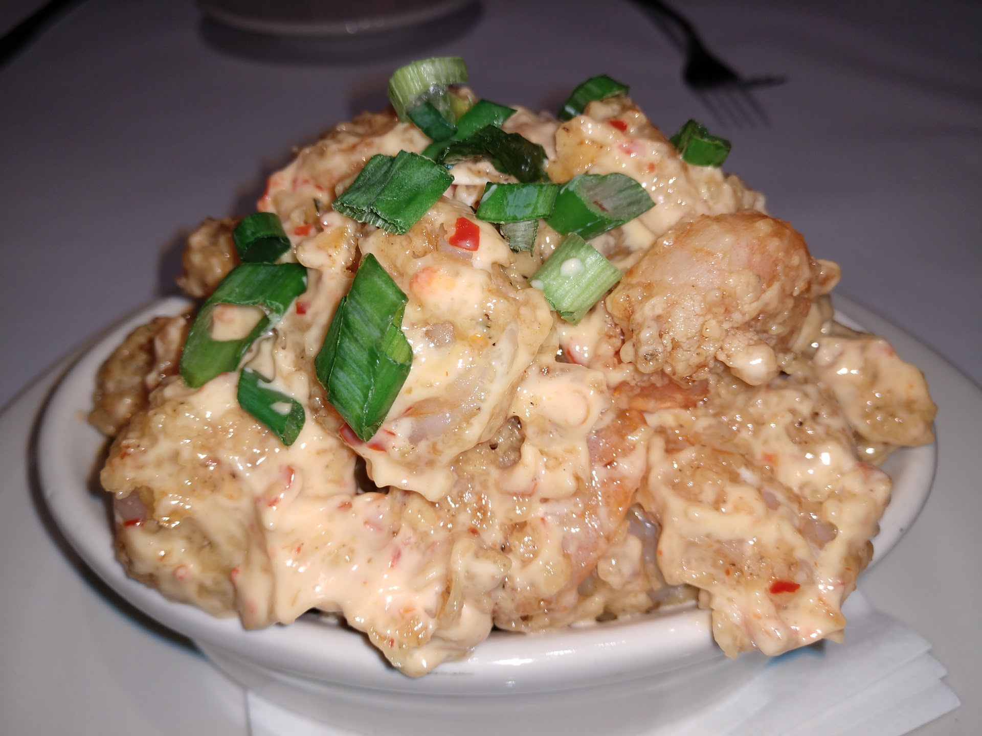 The absolute star of this restaurant's menu is the bang bang shrimp appetizer. As shown in the photo, you get a generous portion (note: the bowl is filled level to its rim with lettuce on which the shrimp are mounded). The fried shrimp are surrounded by a crispy coating and smothered in a truly delicious sauce that has medium heat, a creamy texture, and assertive flavors from Asian spices. For a main, I had a 7-oz sirloin steak with two sides, fries and, for an upcharge, asparagus. For a seafood restaurant, they do a very good job with steaks. Our only disappointment was with the Kung Pao brussel sprouts which were greasy. UPDATE-1: We returned to order two bang bang shrimp appetizers. Again, delicious! I had a Caesar salad as a second course. The lettuce was not very crisp and the dressing bland. My wife had better luck with a cheeseburger on a brioche roll. UPDATE-2: Returned for a special prix fixe dinner for two which turned out to be an incredible bargain for the quantity and quality of food provided. We started with a mixed salad. This was followed by two entrees. We both chose the chimichurri filet with two sides. I had french fries and broccoli. They were both very good and the steak was exceptional and well complimented by the sauce. The dinner included one dessert to share. We ordered the brownies with vanilla ice cream and raspberry sauce, a delicious way to end the meal. The service was excellent and the ambience was very good. This has become one of our favorite restaurants. UPDATE-3: Had the bang bang shrimp tacos. The French fries were just made, hot and crisp. UPDATE-4: The bang bang shrimp were excellent as always. For an entree, we chose a skewer of four scallops and five shrimp with sides of french fries and broccoli to share. The shrimp were slightly overcooked and rubbery, but they tasted great dipped in the lemon butter caper sauce provided. The scallops were excellent. UPDATE-5: My wife loved her pan-seared scallops with spicy Mexican street corn. However, the restaurant missed the mark with my dish. The steak, ordered medium, was overcooked, dry, and lacked taste. The shrimp were very overcooked and rubbery. And, the oily chimichirri sauce was disappointing as I had enjoyed it at this restaurant a month earlier. So, after eating here a number of times, my observation would be that they are not always consistent. UPDATE-6: I was interested in trying a new dish, so I ordered the restaurant's signature pasta dish with shrimp. It included linguine with slivered red bell pepper, quartered artichoke hearts in a creole flavored cream sauce. Unfortunately, the dish was not appealing. The sauce was gummy and tasted like cheese whiz with little evidence of creole seasoning. I picked out the shrimp, peppers and artichokes and left 80% of the dish on my plate. We like this restaurant very much when they're on their best game, but the food seems to be inconsistent, perhaps due to the number of chefs that run the kitchen. Reluctantly, I'm reducing my rating from 5 stars to 4. UPDATE-7: Did not care for the side of risotto but enjoyed the coleslaw that came with our scallops and shrimp skewers. UPDATE-8: The restaurant is current running a special lobster menu. We chose to share appetizers of bang bang shrimp and lobster bisque, followed by filet mignon with a lobster thermador sauce. The steak was excellent. Juicy and we'll seasoned. However the thermador was forgettable. We requested coleslaw be substituted for the risotto and thoroughly enjoyed it. UPDATE-9: Ordered four dishes only available during happy hour. The bang bang Chicken was good but we prefer the dish with shrimp. The fried cauliflower was excellent and came with a killer sauce. The shrimp on toast were fine but paled a bit in comparison to the sauces on the chicken and cauliflower. Finally, the cheeseburger sliders on a soft bun with a pickle and special sauce were a treat. The tomato bisque is excellent. UPDATE-10: The butterfish was oily and...