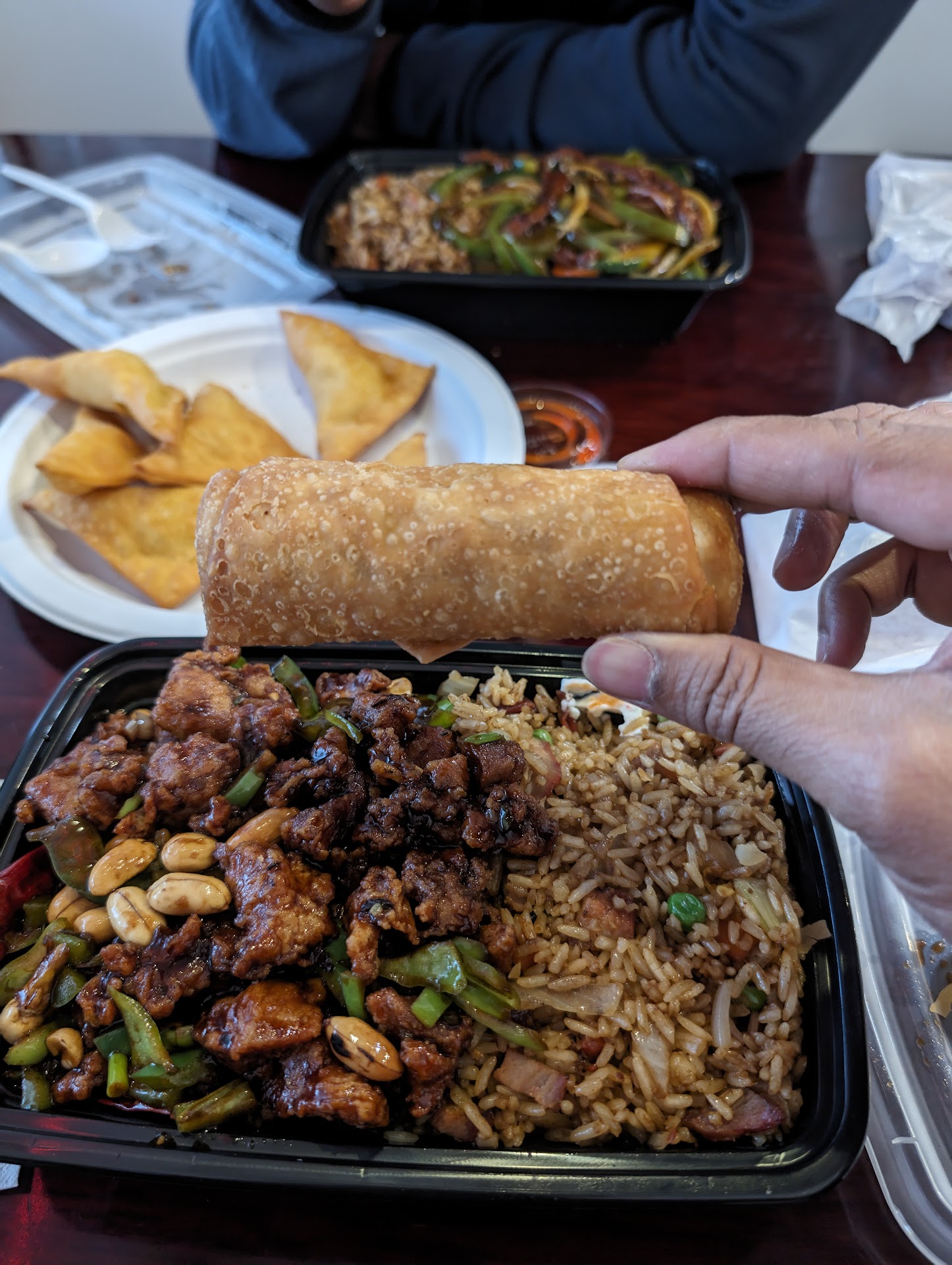 Read moreOrdered over the phone, the person who took my order was pleasant. I was told 20 minutes for my order, it was ready and waiting on me precisely 20 minutes later when I showed up. The atmosphere was clean and cozy with a clear view of their kitchen. There was a little condiment and utensil station that was very clean and well stocked with the usual variety of sauces, as well as disposable spoons, forks, and chopsticks. The food was packed extremely well! I'm impressed at how full they made the containers without spilling sauces all over them. The food is much better than we were anticipating! The vegetable mix in the lomein isn't just the boring, average assortment, and tastes as if it's fresh instead of frozen like many other places. The sesame chicken is very crisp under the thick sauce and has almost a smokey flavor. The curried chicken is fantastic and I'm not a huge curry person. The rangoons are filled well and shaped in an easy to eat triangle instead of the crazy flower shape. The pork fried rice was the only thing we got that could have been a little better, but it was still great, but overshadowed by how incredible everything else is. I regret not getting photos of the food before ripping into everything like...