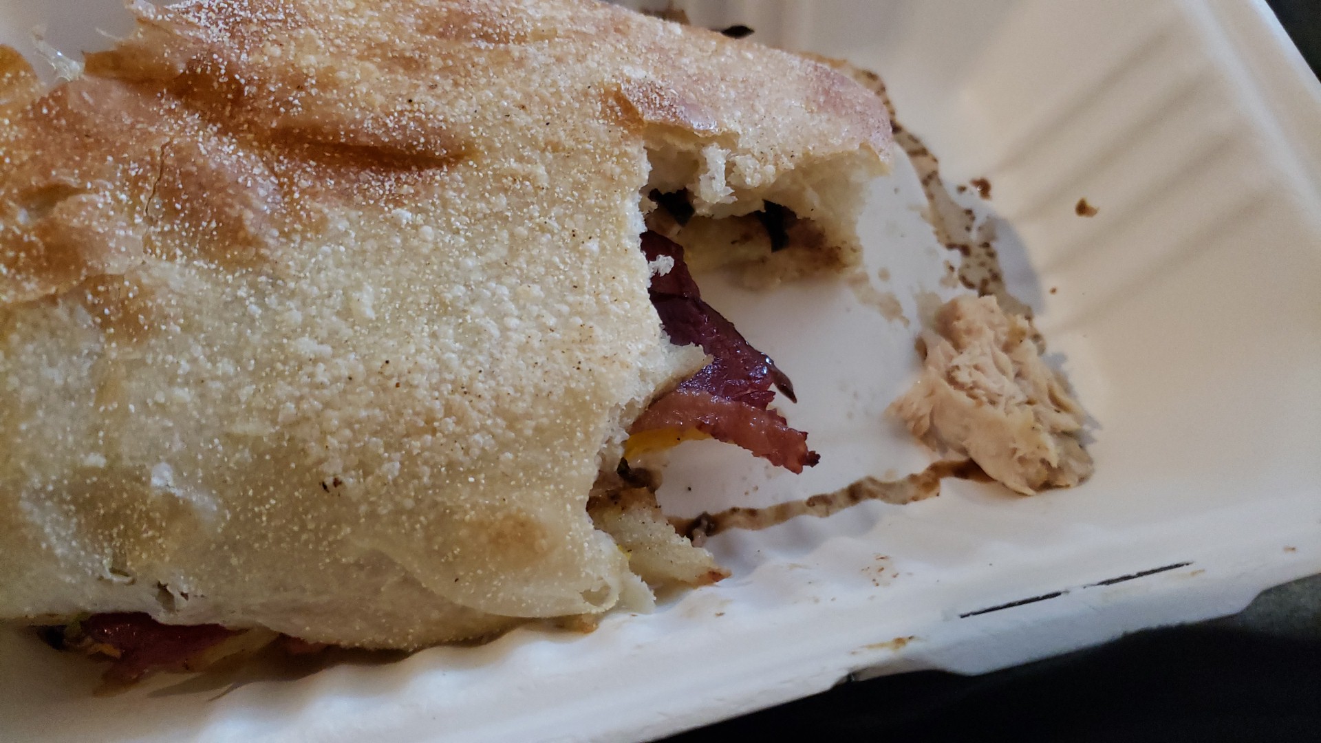 Then we had the savory crepe. First time we've gotten turkey in a crepe where is actual piece of meat and not sliced deli. The brie was mixed with something and was reddish, tasty though. The thinly sliced apple gave just enough crunch for a welcomed mix of texture. Topped with a bit of salad.