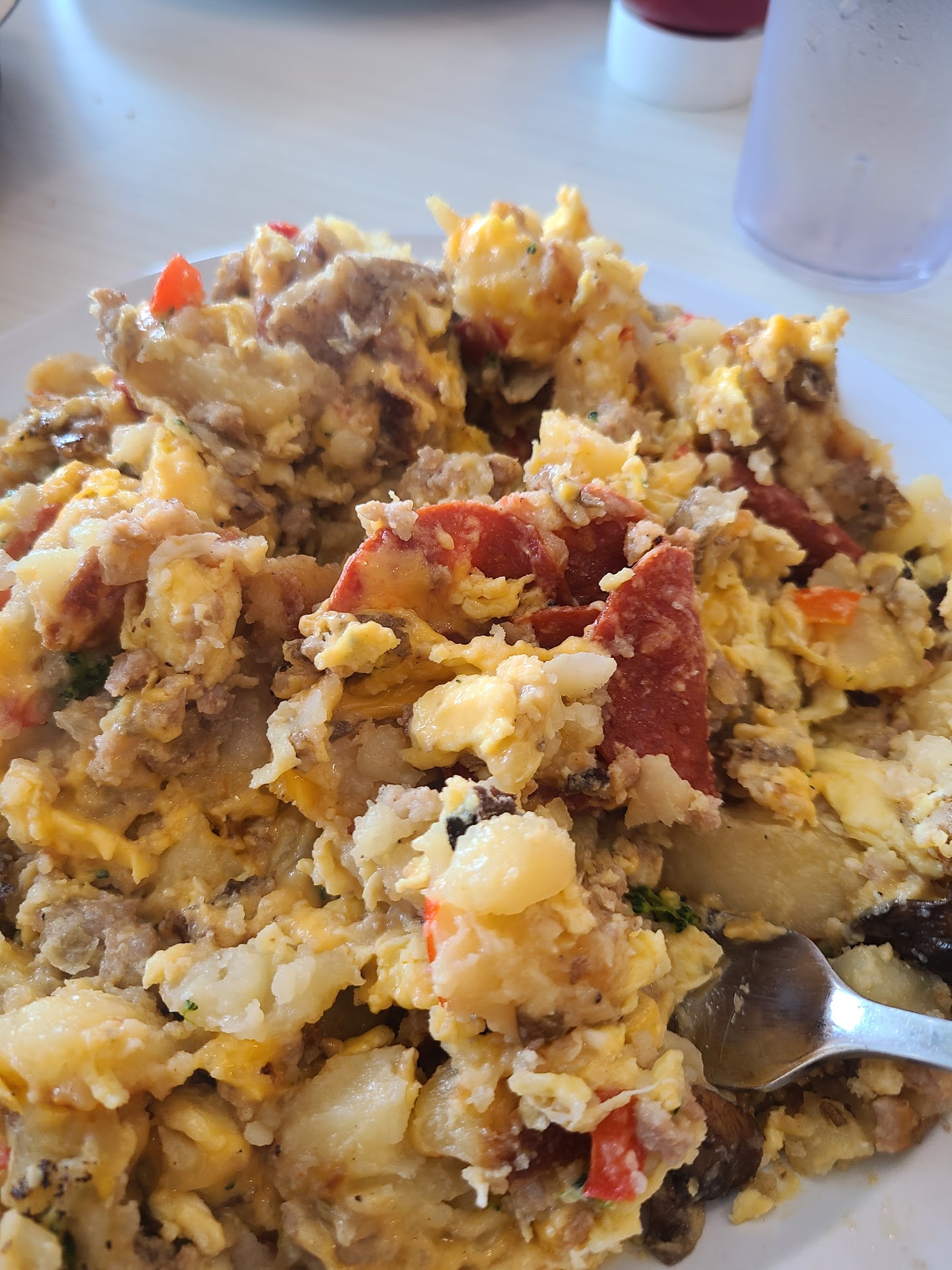 Read moreHonestly it's pretty terrible. The first red flag is we had to ask for utensils as we sat here with people walking around us not paying any attention to the fact that we weren't eating our food. Their scrambled eggs were dry and not scrambled, they were just fried. Their sausage links are real sausage instead of breakfast sausage links which I personally hate but that's my opinion and their corned beef hash was a sad excuse of mushy disgustingness that I absolutely covered in hot sauce to eat because I was starving. I had pretty high hopes for this place but I don't recommend it unless you like dessert like breakfast. My girlfriend said the pancakes were great flavor wise but the texture was horrible and they fell apart and turned mushy too fast, the home fries were very salty. I ended up paying full price for everything even after telling the waitress that I didn't like it and only ate 5 bites and she offered me nothing off. It didn't sit well with me so I went back in and said I didn't want to make a scene but it didn't sit well with me paying full price for food we didn't eat. I said I'll happily pay for one of them but I'm not paying for both and the women I spoke to completely...