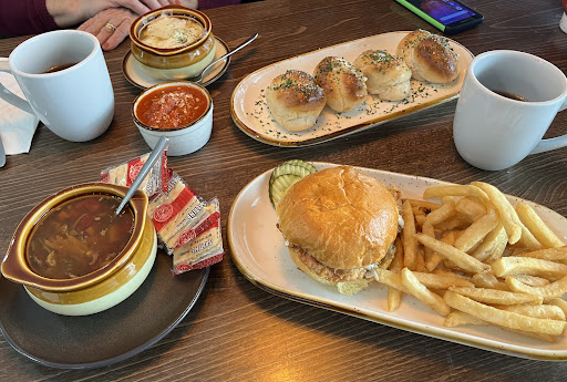 Read moreWorst restaurant experience I can remember. We figure the waitress was off her meds, or maybe had taken double. The place was NOT busy when we came in and yet It took more than 15 minutes after taking our seat to get the waitress to stop by with menus, another 10 minutes for her to stop by to say “want something ta drink?” 10 minutes to get water and coffee…. It just went on and on, and we could see others were having issues. Finally got her to stop by and take our order, and then we settled in for another 20 minutes wait for food to come. I ordered chicken parm which the menu said came on a bed of linguini, with salad and garlic toast. The chicken came on a plate, with a thin coating of red sauce and some mozzarella on top. It was dry and so tough and overcooked it was inedible. There was a separate dish with spaghetti - not linguini - and a tablespoon or so of weak red sauce. When I asked the waitress where my salad was she told me it didn’t come with salad. When I told her the menu says salad, she said no, that’s not right, but she could get me a salad if I wanted. My wife pointed out that she didn’t have her coleslaw. What she did have was breaded haddock(?) filet that had been fried to dryness and a sloppy pile of Mac and cheese beside it. And this was happening to everyone - the elderly couple at the table beside ours ended up walking out after waiting way too long for their order which never came. It’s too bad. When this place first opened my wife and I went for lunch and had a great experience - food and waitstaff were great - and we went back a couple times soon after that. Something has happened since then and the owners clearly have no interest in building clientele or running even a good restaurant, let alone a very good restaurant. The quality of our dinners should be embarrassing but apparently that’s not the case. We won’t be back again and we’ll certainly spread the word that this place is not worth any...