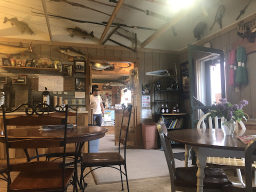 Read moreMy niece and I stopped in for a warm up after packing up our tent in the rain. If we'd found this on our first day we would've made it a daily stop! It is the coziest little cafe. You can sit at a few little tables that would look at home in Granny's kitchen and sip your coffee while admiring a fresh bouquet of wildflowers, or curl up in a comfy side chair and look over the original art and collections of fishing rods and bows in the rafters. All while enjoying some fresh baked goodies and a really good cup of coffee, provided by the gentleman we dubbed "The Bearded Baristi". While he looked more like he belonged in the woods doing manly, woodsy stuff, he made a mean cup of Joe, and served with a smile! If you're lucky there'll be a couple of sweet old dogs in the attached bait store so you can end your visit with a few pets. This is the kind of place that makes "Up North" so special. ...