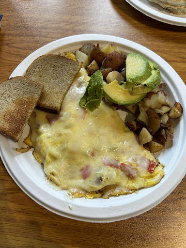 Had the florentine omelette with avocado. It was HUGE, but didn’t stop me from finishing it because it was so good. Husband had a short stack of chocolate chip pancakes and a bacon egg and cheese, which were both amazing.