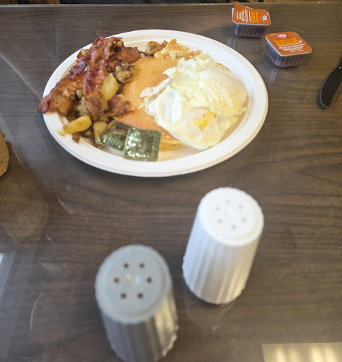 Read moreBreakfast was not bad at all. Coffee was actually good. 3 people; 2 omelets, 1 egg on bagel with bacon and cheese, 2 orders of their special home fries, 2 cups coffee, 1 bottle or water from Walmart. You have to order your food at register and they bring it to you. Cost $70.00. Insane!! Certainly won't be going there anymore.