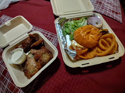 My order was of the Fried Portobello Mushrooms and Honey Sriracha Chicken Sandwich with Onion Rings, the total coming to $32 before tip. My initial take on everything looked pretty good, through I was surprised how small the Fried Portobello Mushrooms order was. For $13 I was expecting at least a basket, but I got a small box with just a handful of fried slices of mushroom. The onion rings were also super floppy and most were not fried very long, with a couple tasting undercooked.