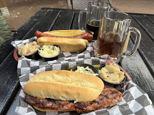 Read moreStopped in for lunch, burger was good but the meat was pretty thin, toppings for burger was missing even though they asked and we said yes to all. The cook obviously can’t read. Waitresses were all very alert and kind. But the price for beer was a scam and I’m about to explain the rip off. I ordered a liter of beer and my wife ordered a half a liter. When I noticed the size difference I then ordered an ice water and requested it to be in the same glass as the half of liter that my wife was using. When I finished my liter I poured the ice water into my liter glass and it filled 1/4 of the glass. So you’re better off buying a liter for 13.00 than 6 to 7 dollars for 1/2 liter knowing it’s not half liter. Restaurant table seating is in patio when entrance is in front. Don’t offer French fries with burger but can get potatoe salad which is served in a small cup that is no bigger than the cup one might get ketchup or tartar sauce in. Which is about a table spoon. Our waitress was great but the cook is clueless and the proportion of food is a joke. This business won’t last. We spoke outside with another party just leaving and they was not...