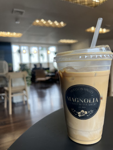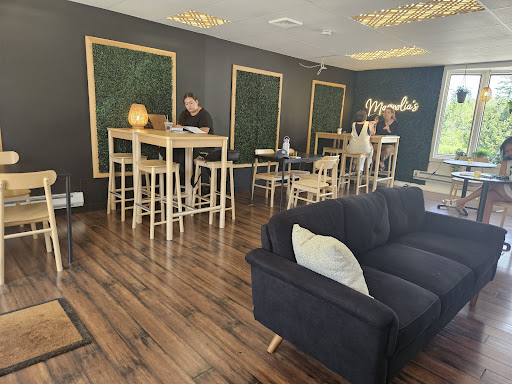 Magnolia Coffee & Tea Shop is a cozy, tucked-away gem perfect for a relaxing coffee break or catching up on work. The ambiance is warm and inviting, with soft lighting, tables, work station and the decor that adds to its charm.
