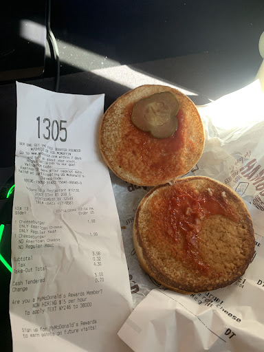 My boyfriend and I go to this McDonalds because it's convenient and something cheap for a last minute meal. We all know McDonalds takes the cake with their prices. Unfortunately, that's not enough to outweigh what we experienced tonight in the drive-thru. We both ordered McPick 2 for $3. I got a McChicken and Small Fry and he got a Cripsy Chicken Snack Wrap with ONLY cheese and a Small Fry. My half of the order was fine but his Snack Wrap had everything on it when he only wanted cheese. We understood that this happens and decided to go back in the drive-through to get a new one. The employee was nice and didn't ask any questions other than the necessary ones. He hands us what we thought was a new Snack Wrap but it turns out they just wiped off the lettuce and ranch and gave it back. My boyfriend could still taste the flavors he specifically asked to be taken off. All in all, I am not satisfied because they were too lazy to make him a new one, mind you there wasn't a line of any sort behind us or inside. They weren't closing either because it was a 24 hour McDonalds. I can't help but be angry at this act because of the potential risks of someone whom might be allergic and eating the remains of something they deliberately tried to "wipe off". If your order is ever made wrong, don't bother going back. They'll just do exactly what you could have...