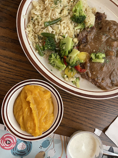 Read moreMy family had lunch at noon on Black Friday. The place was less than half filled and service was fast and attentive. The restaurant is small and booth seating is less roomy than larger restaurants. We came here for the different selection of American diner food and their daily specials. We ordered two specials, the battered fish with mac and cheese and also the Salisbury steak with a side of rice. Our choice of sides were a puréed butternut squash and steamed veggies (from frozen). They also offered coleslaw. They also offered mashed potato or fries. Soup didn’t come as an option with the specials. I ordered a bowl of steak and barley soup. Our order of battered beans with ranch dip arrived quickly and crisp hot. The rest of our order followed. The desserts are not visible in a showcase at this restaurant. We didn’t order any dessert, and the waitress didn’t offer to ask us about dessert. We paid our bill at the register, and there was a bottle neck of patrons waiting to be seated and patrons waiting to pay. The entire restaurant is small, cozy and overall less spacious than other classic diners we’ve visited. The place is kid friendly, very popular with large groups of families and the experience, fast, friendly and affordable, made the food...